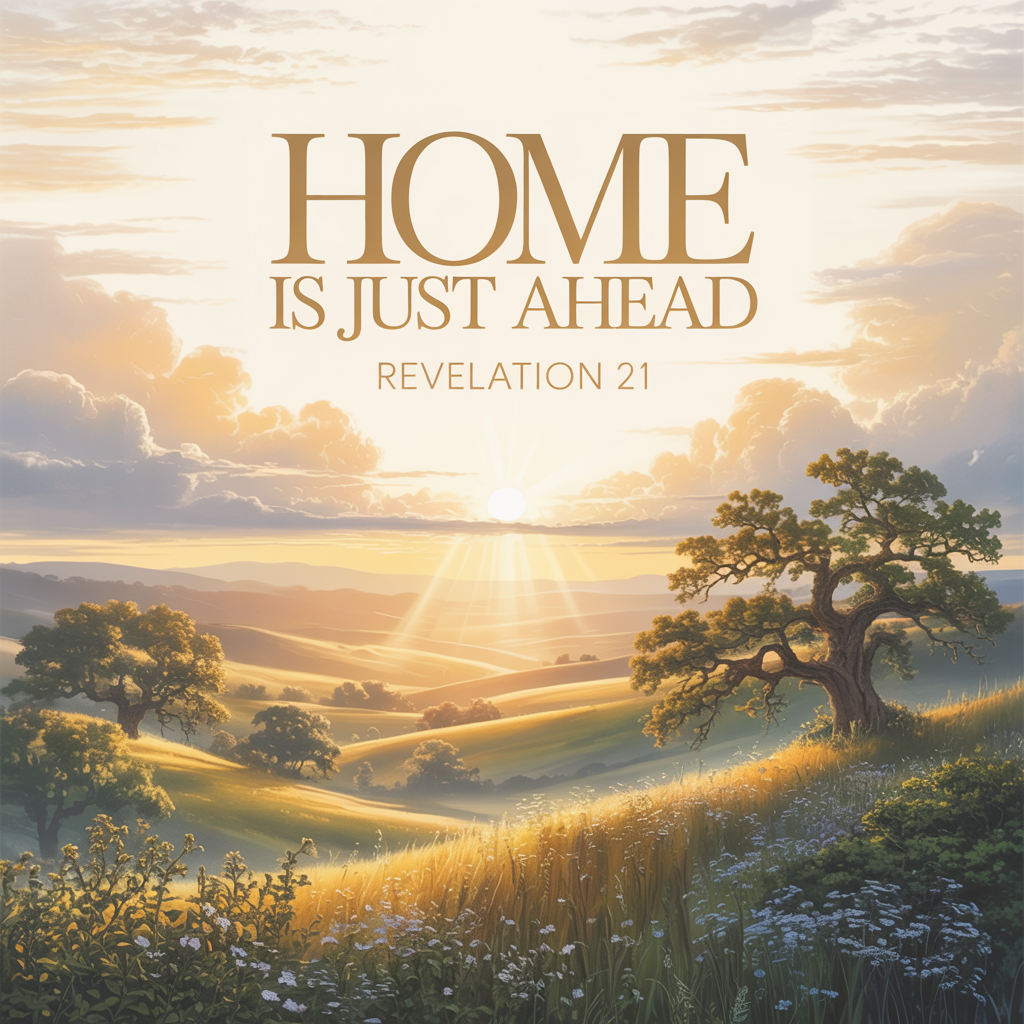 Modern hymn–ballad with soft piano, acoustic guitar, gentle strings, and light drums, Warm male lead vocal with soft female harmony and swelling choral support near the final chorus, Tempo around 78 bpm, Peaceful, reflective, and uplifting — evoking the anticipation of Heaven and reunion with loved ones, Rich reverb, cinematic but intimate, like a hymn of farewell and joy combined