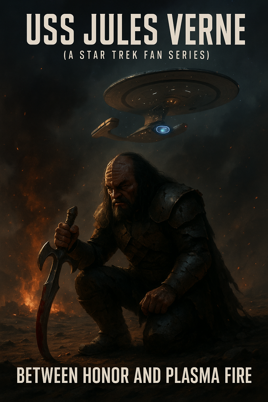 Epic cinematic orchestral score in the emotional style of Star Trek: The Next Generation (inspired by episodes like “The Inner Light” and “Sins of the Father”), Slow tempo (68–75 BPM) with expressive cello as the lead instrument, Backed by string ensemble, French horns, tuba, low male choir (wordless), subtle taiko drums, harp, and ambient sci-fi textures (plasma hums, metallic echoes), Mood is introspective, noble, torn between duty and destruction, Structure evolves from sparse solo moments to tense orchestral builds and ambient tension, Choir adds ghostly atmosphere, percussion supports emotional weight, not rhythm, No lyrics or vocals, Deeply reflective and cinematic