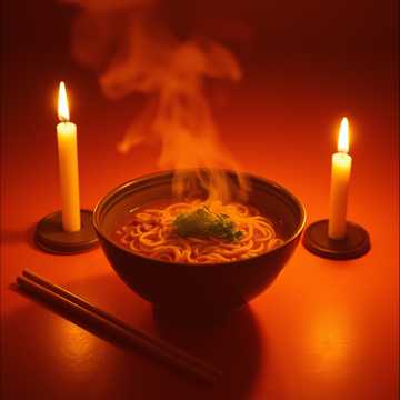 Slow, soulful pop ballad with rich strings, soft percussion, and warm male vocals, Deep, emotional tone with sensual delivery — breathy verses, swelling harmonies in the chorus, and gentle electric guitar accents, The arrangement builds gradually from piano and bass into a lush, romantic climax, The mood is intimate and passionate, like a late-night confession of love, Though the lyrics describe a man’s longing for ramen, the performance treats it with genuine devotion and intensity, as if singing to a lover