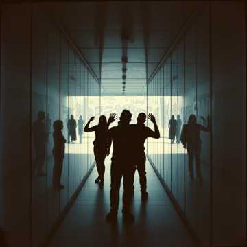 A theatrical metalcore anthem drenched in horror movie motifs, opening with suspenseful synth strings and dissonant piano, Guitars enter with sharp, cinematic riffs, punctuated by sudden silence and explosive percussion for jump-scare breakdowns, Dramatic choir layers add eerie grandeur