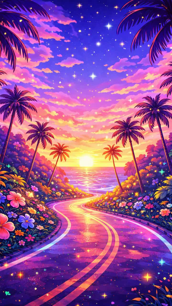 Dream pop foundation with heavy shoegaze atmosphere and smooth synthpop melodies, Peaceful, tropical, late-night vibe with warm air, neon glow, and ocean-like ambience, Mid-slow tempo (85–95 BPM), Chill trap elements with soft 808s, subtle hi-hats, and pulsing low bass, Psychedelic and chillwave textures throughout: washed guitars, deep reverb, analog synth pads, phasers, tape saturation, and drifting ambient noise, Light glitch-hop accents only in transitions and breakdowns, Experimental neo-soul chord progressions blended with nostalgic new-wave synth arps, Shoegaze layers swell during choruses, then dissolve into spacey verses, Distinct male vocal: soft but confident, airy, slightly husky, emotional and intimate, Close, present lead vocal with layered harmonies, whispered doubles, and distant echoes, Overall feeling is dreamy, hopeful, psychedelic, and freeing—like driving down a tropical avenue at night