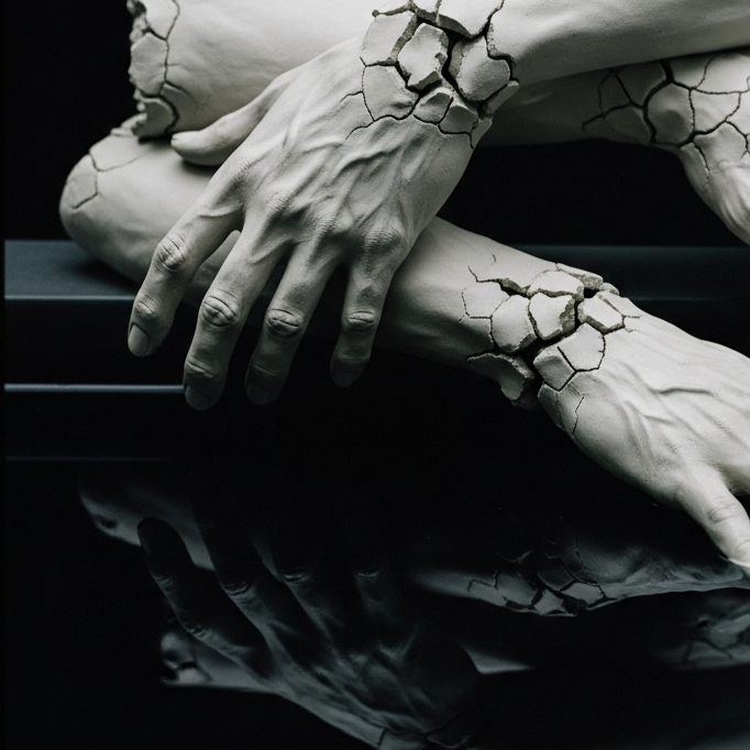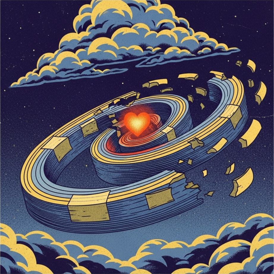 "Cognitive Dissonance Pop" that merges accessible melodic hooks with unsettling production choices, Begins with minimal atmospheric elements - distant piano, glitchy synth textures, and subtle electronic percussion, Gradually builds with muted beats, ambient guitars, and pulsing bass, Features dramatic dynamic shifts between sparse, intimate moments and dense, layered climaxes, Vocals close-mic'd and natural in quieter sections, with occasional pitch-shifting and subtle distortion during intensifications, Incorporates unexpected pauses and glitches that disrupt the flow, Production has both warm analog elements and cold digital textures, creating tension, Rises to an emotionally charged peak with full instrumentation before dissolving into atmospheric remnants with a surprising warm synth fade, Tempo moderate, with slight variations that create unease