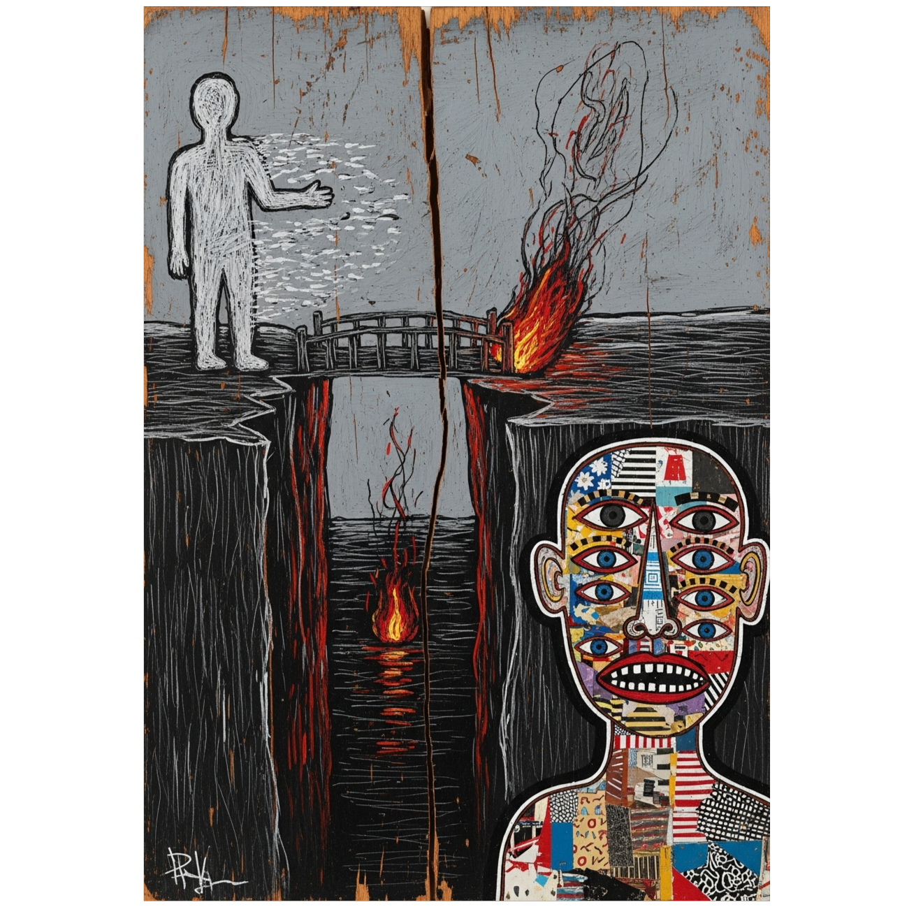 Alternative folk-rock with neo-soul influences, fingerpicked acoustic foundation, analog synth textures, driving bassline, layered harmonies, Intimate verses with sparse arrangement, explosive choruses with full band, Raw, slightly imperfect vocal delivery with natural breath sounds and subtle pitch variations, Warm analog saturation throughout, slight tape hiss, organic timing imperfections, Piano arpeggios in bridge, gospel-tinged backing vocals in final section, Medium tempo with half-time feel in verses, straight rhythm in chorus, Rich harmonic complexity with unexpected chord progressions