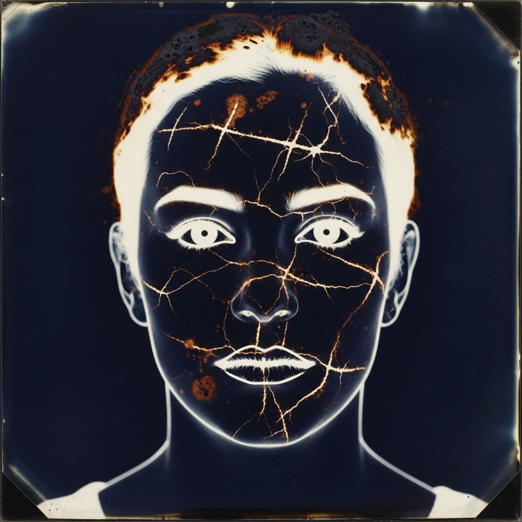The song unfolds with a pulsing analog synth and tape warble, creating a hypnotic intro, Verses deliver close-mic’d vocals, sparse trap hi-hats, 808s, and vinyl pops, Pre-chorus builds with layered vocals, string synths, rising intensity, Chorus explodes with alt-rock/electronic glitch, processed vocals, and a driving groove, The bridge strips back to lush reverb piano and whispered vocals, Throughout, the feel is humanized—grooves breathe with subtle timing shifts, tape saturation, and complex harmonies