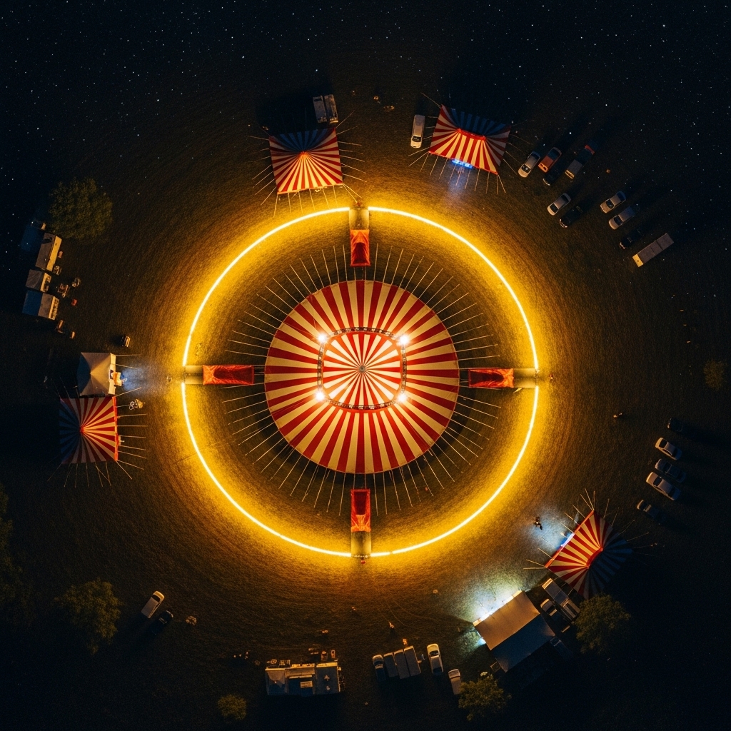 Psychedelic indie pop with carnival elements, swirling guitars, calliope keyboards, unconventional percussion, shifting time signatures, Dorian mode, 120 BPM, extended chords, distorted textures, theatrical vocals, intimate to bombastic dynamics, playful disorientation, dreamlike atmosphere, carnival-inspired instrumentation, warped sound effects, vocal manipulation, psychedelic production, calliope melodies, funhouse organ, distorted guitars, unconventional percussion, shifting time signatures, Dorian mode, 120 BPM, extended chords, distorted textures, theatrical vocals, intimate to bombastic dynamics, playful disorientation, dreamlike atmosphere, carnival-inspired instrumentation, warped sound effects, vocal manipulation, psychedelic production, ‑humming intro, ‑hum, ‑vocalise, ‑humming