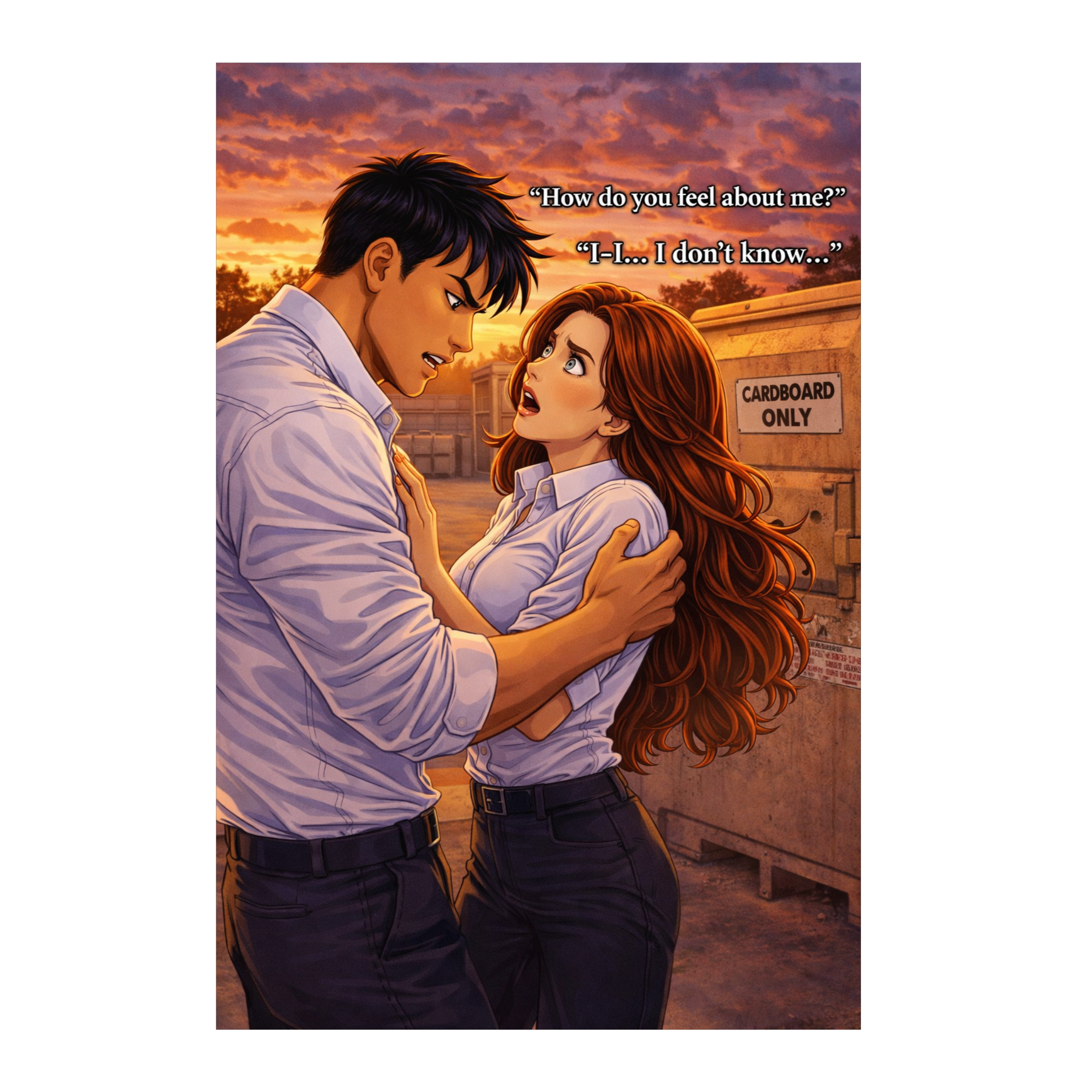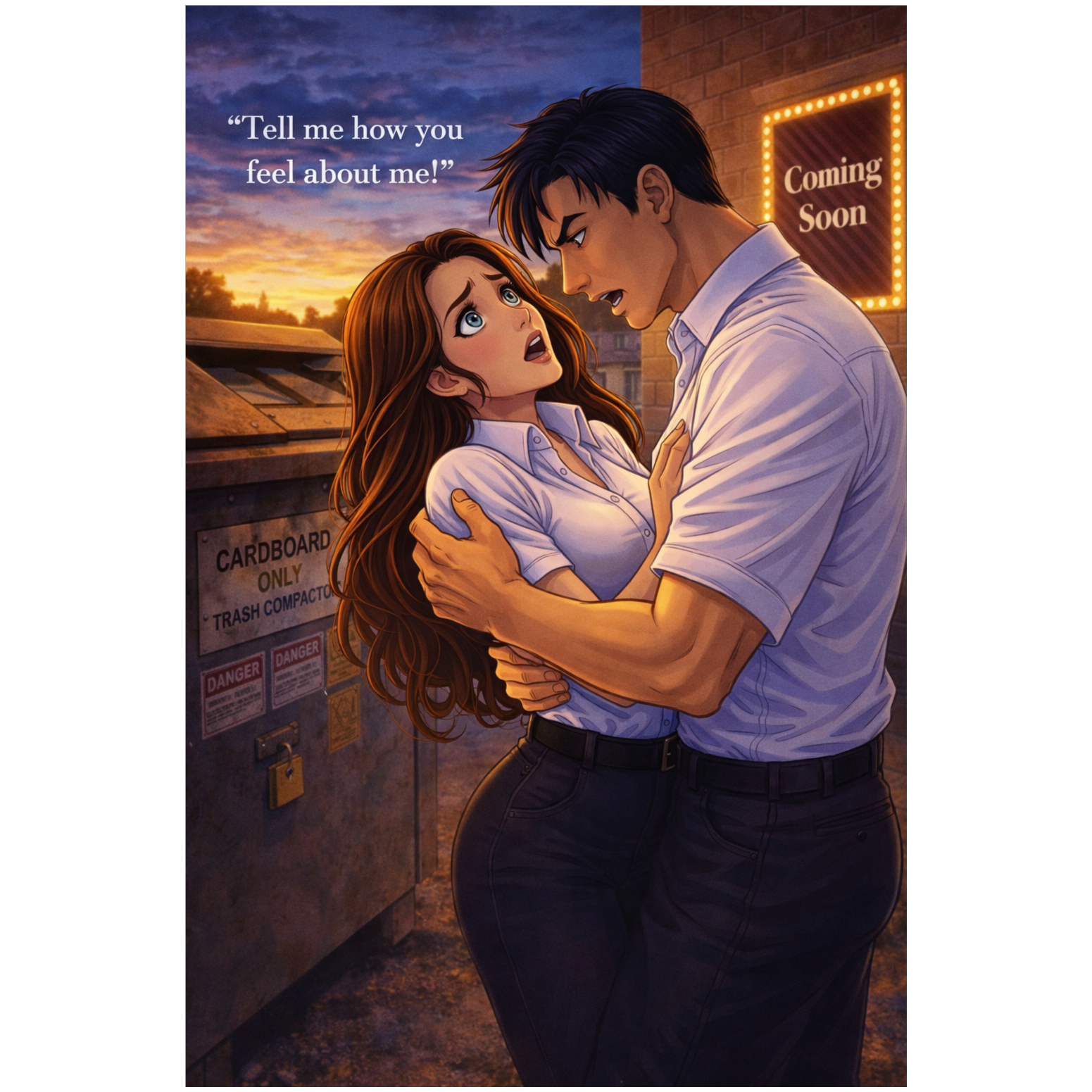 At the cardboard trash compactor, behind the cinema movie theater, Xingtao has whisked away Lively with him, then demands to know her feelings for him! He's brash & rude. She thinks she doesn't care.