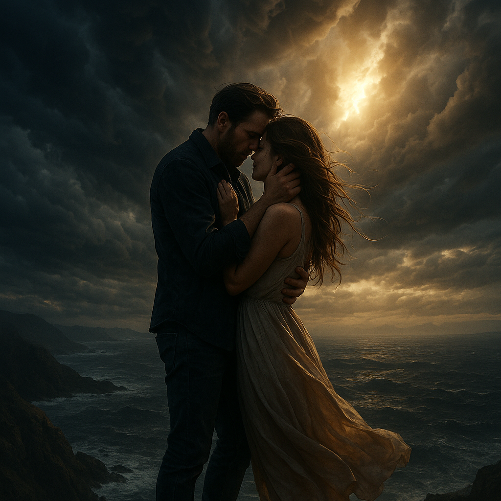 Instruments: Warm piano, soft electric guitar licks, deep bass, subtle strings, gentle drums with brushes, gospel-style backing harmonies in the final chorus, Vocals: Duet — raspy, emotional male vocals (Lucian) paired with a clear, ethereal female vocal, Gentle call-and-response in verses, harmonized choruses, and a powerful gospel-infused finale, Mood: Romantic, heartfelt, uplifting, A song about two souls uniting in love and strength, Production: Warm, cinematic soul-pop mix with layered harmonies, dynamic rise from intimate verses to climactic chorus