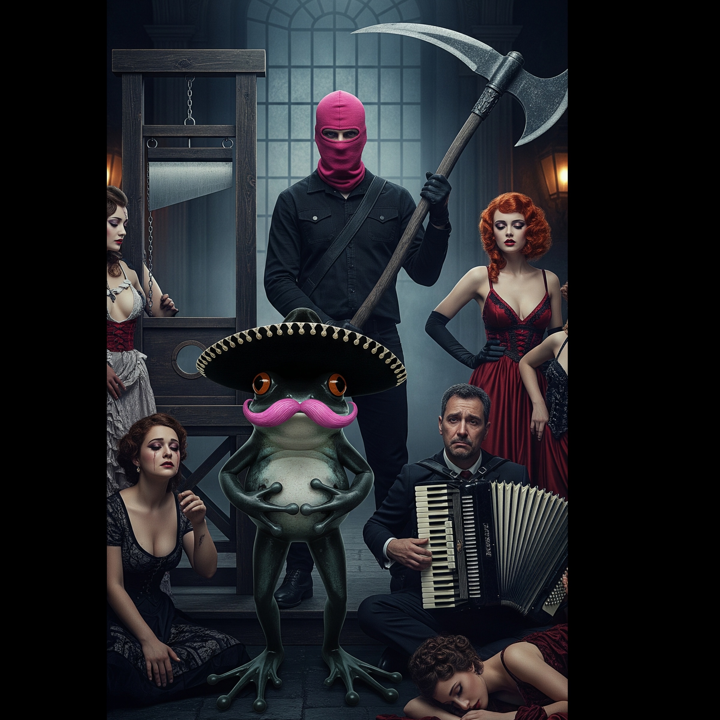 fx gunshot, romantic virtuoso mexican, mambo corrido, circus orchestra, imperial anthem, montuno, accordion, 808, trumpet militar