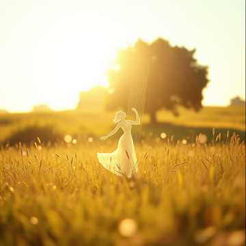 Dream-pop / ambient pop with soft electronic beats and emotional uplift, Harp, atmospheric synth pads, glockenspiel, warm reverb-coated piano, soft shimmering guitars, gentle dream-drums, Female vocal (bright, airy, celestial), clear diction, soft breathiness but strong chorus layers, let the end of verses and chorus be long tail vocals, Tone: hopeful, magical, sunrise light, ethereal warmth, Mix: wide stereo, soft low-end, glowing mids, sparkly highs, Overall vibe: “A song in the mindset of dancing your heart out and not caring who is watching”
