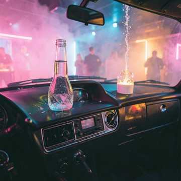 Electronic dance track with heavy trap and future bass influences, The arrangement features a prominent, distorted synth bass that follows a syncopated rhythm, A high-pitched, chopped vocal sample serves as a melodic hook throughout the track, The percussion consists of a crisp snare on the backbeat, rapid-fire hi-hat rolls, and a heavy, sub-heavy kick drum, A bright, detuned saw-wave synth plays staccato chords during the drops, Atmospheric pads and riser sound effects provide transitions between sections, The track is in the key of G minor at a tempo of 150 BPM