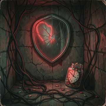 Future bass track with heavy trap influences, 160 BPM, in the key of G# minor, The arrangement features a prominent sidechained supersaw synth that pulses on the off-beats, creating a rhythmic pumping effect, A deep, distorted 808 bass follows the kick drum pattern, providing a heavy low-end, The percussion consists of a crisp trap snare on beats 2 and 4, rapid-fire hi-hat rolls with varying velocities, and occasional woodblock-style percussion hits, Male vocals are processed with pitch-shifting and heavy tuning, often layered with harmonies, Melodic elements include a bright, staccato pluck synth and a high-pitched vocal chop melody during the drop sections, The track utilizes frequent riser effects, white noise sweeps, and sudden silences for dynamic transitions