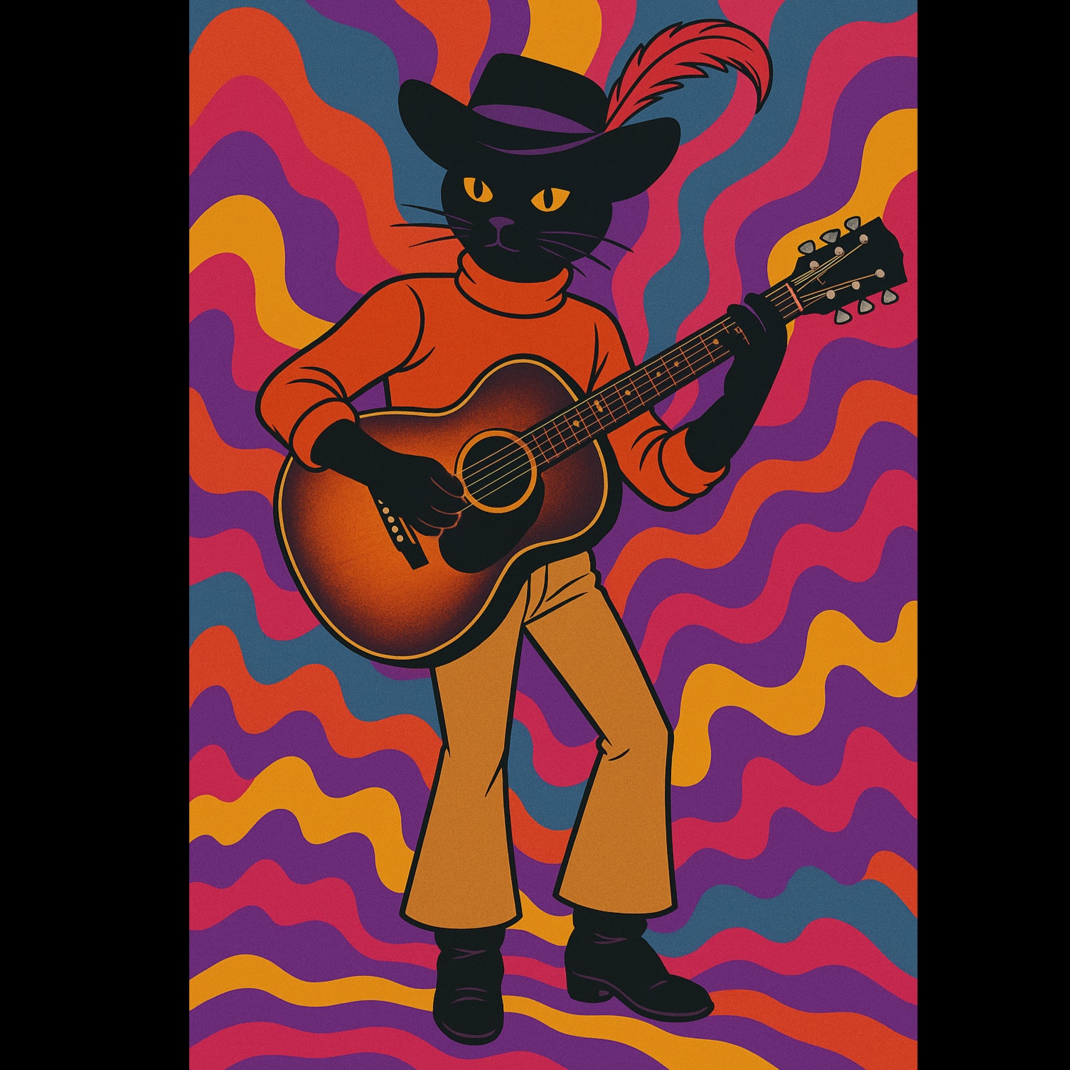 Bright and groovy 1960s retro pop rock with jangly electric guitars, lush vocal harmonies, tambourines, handclaps, and vintage analog reverb, Upbeat and infectious melody, Classic Motown-style bassline meets sunny California surf vibes, Male lead vocals with a charming, carefree tone singing about summer love, peace, and rebellion, Features organ stabs, call-and-response backing vocals, and an old-school rock 'n' roll drum shuffle, Add warm vinyl crackle throughout for a nostalgic, analog atmosphere, Feel-good, psychedelic-tinged nostalgia with technicolor optimism and flower-power energy