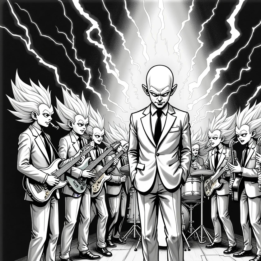 High-energy psychedelic surf rock with virtuosic electric guitar solos drenched in vibrato and fuzz, sharp twangy riffs, and tight, punchy vintage drums, Features a retro analog combo organ with a quirky tone, adding a touch of kitsch to the intense groove, The arrangement is cinematic and dynamic, evoking the swagger of a leather-clad beach outlaw, Think Dick Dale meets King Gizzard with a modern, polished edge