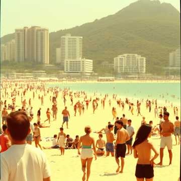 Sultry Female vocals, 60's, beach rock, fugue, tropical, slow tempo, Vibrato electric guitar, electric bass, light bongo, conga, warm breeze, A bright love song, the part in parentheses is sung in a fugue style, following the vocals