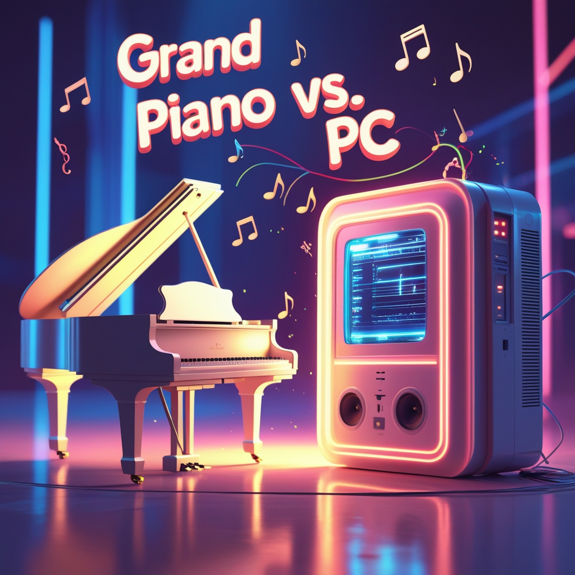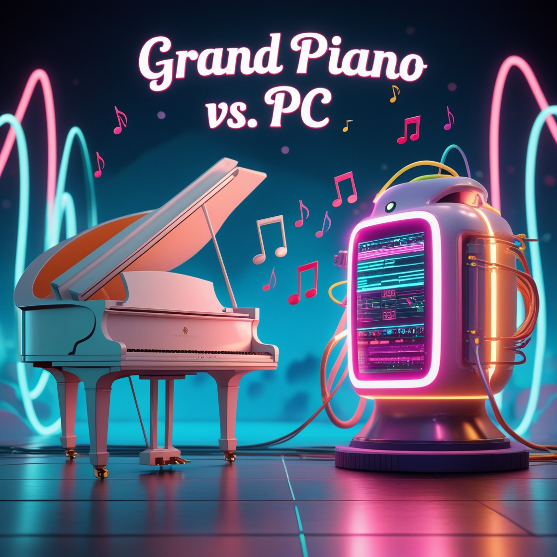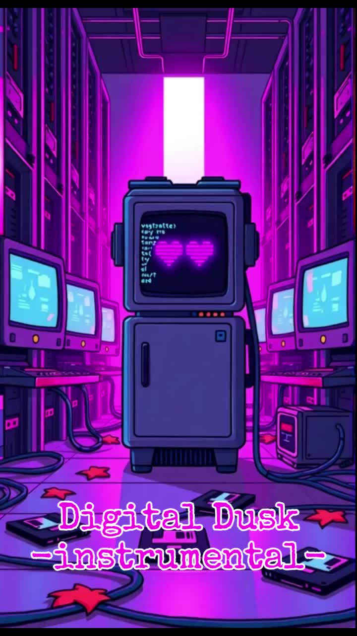 Retrowave/Synthwave instrumental inspired by “Electric Dreams, ” Begin with soft, intimate solo cello or violin—realistic, expressive, as if practicing alone, At bar 41, introduce subtle 80s PC startup sounds and gentle chiptune-style synth solo—pure electronic, nostalgic mood, From bar 73, mix in cautious synth accents and glitches as cello/violin resumes, acoustic and machine sounds interacting tentatively, At bar 121, develop a duet: motifs exchanged between real strings and synths, soundscape fills out, difference between acoustic and electronic timbres clear, From bar 161, both unite in a powerful, melodic Retrowave finale—lush synths, energetic drums, emotional collaboration, but each voice remains distinct, Outro: cello/violin leads, synths and PC sounds fade, Cinematic, hopeful, 80s-inspired, focus on the evolving contrast and harmony of acoustic and machine instruments
