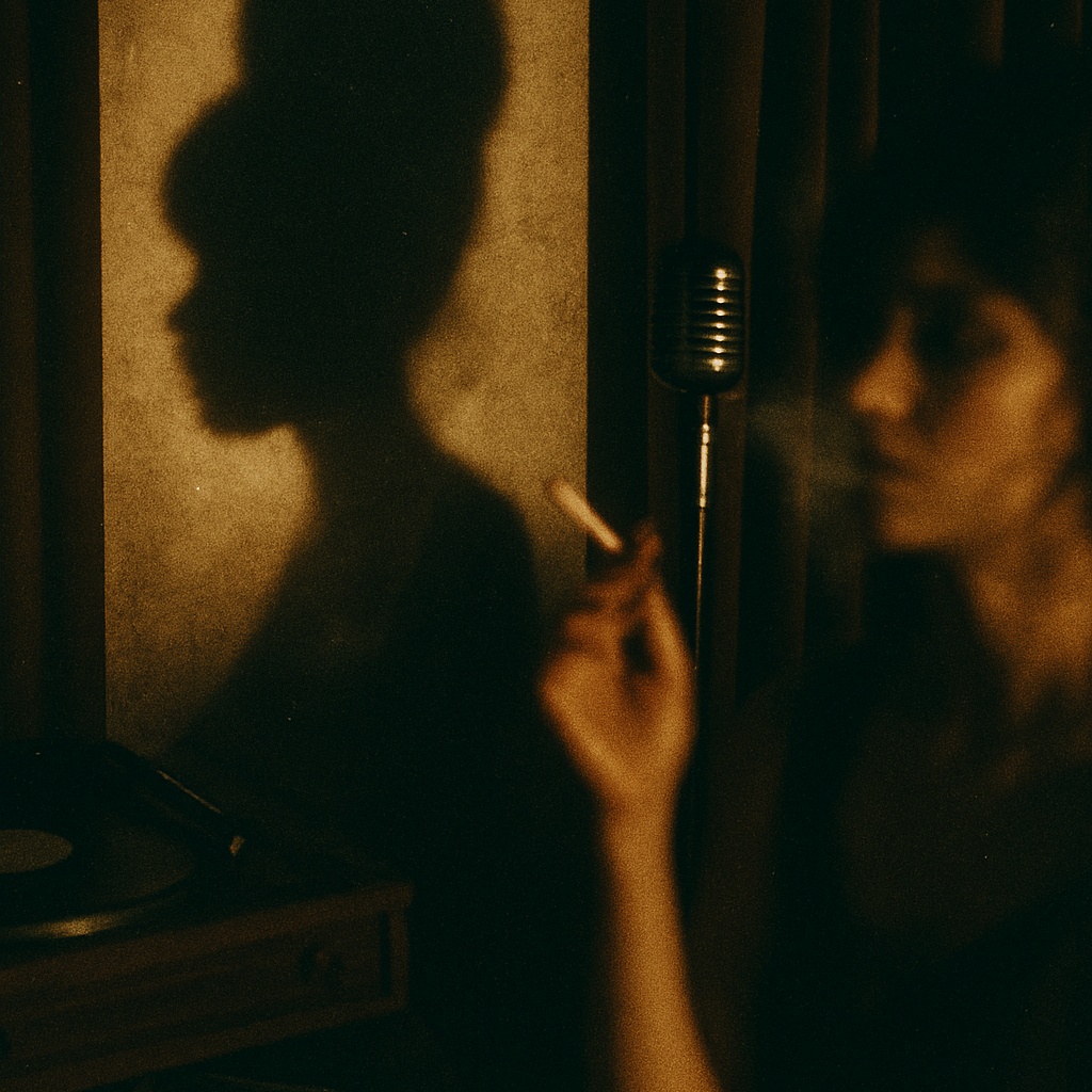 Retro Soul with Motown swing, dry drums and syncopated tambourine, jazzy Wurlitzer comping, vintage tape coloration, Tight bass walk, occasional brass punches, and string stabs on turnarounds, The rhythm section is steady and punchy, evoking 60s heartbreak grooves with bar bite, Arrangement leaves space for smoky, defiant lead vocals and sneaky call-and-response from a girl-group-style backing, The tone is bitter, self-aware, and emotionally bruised, The singer performs with sarcastic restraint, veiling sadness with barbed irony and quiet confidence, Each section carries its own emotional weight — verses simmer, choruses confront, bridge retreats, It’s not ghostly; it’s grounded in pain, survival, and swagger, Think Camden jazz club, too much eyeliner, and a lover not worth the lyric