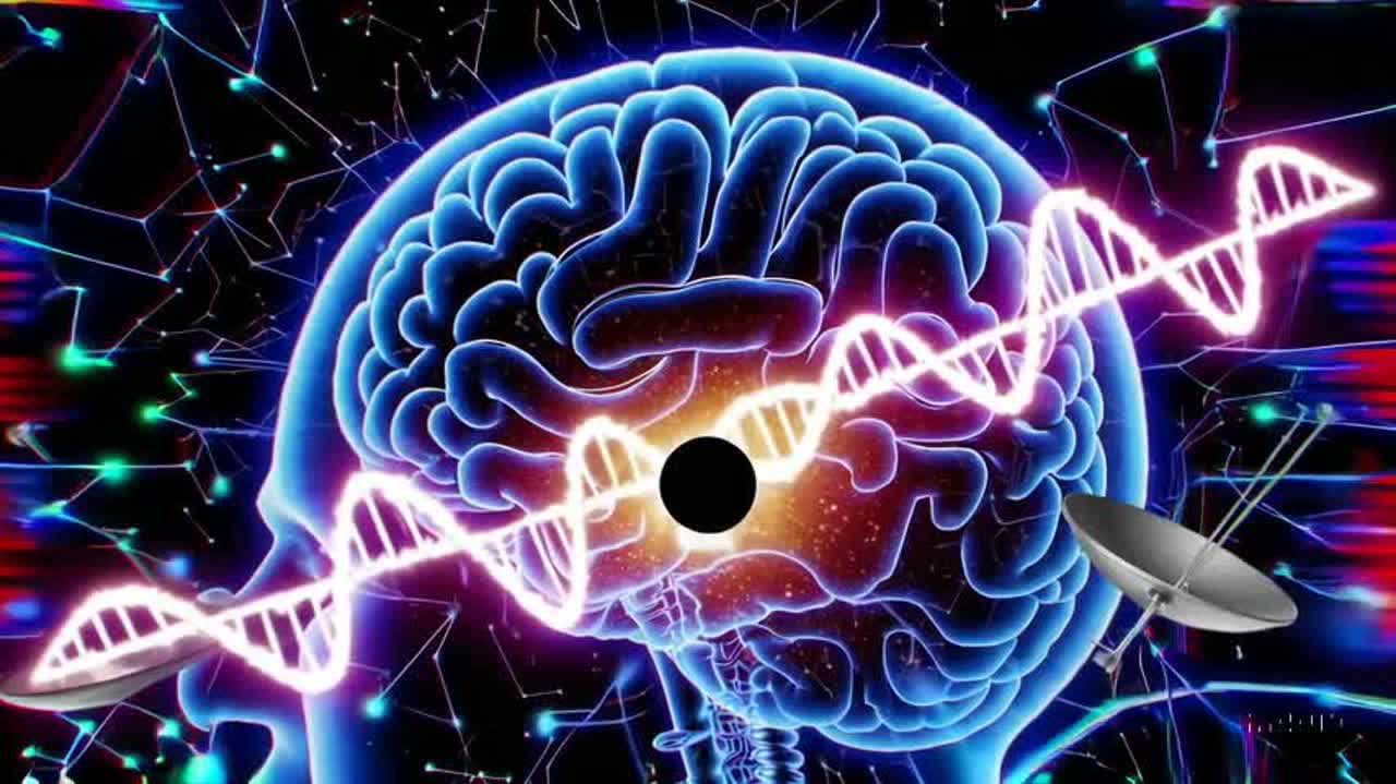 darksynth glitch-hop jock jam with crushing industrial rap, distorted rock chants, and ghostly harmonic overlays, Heavy use of glitch effects, pulsing bass, stuttering beats, and whispered refrains, Vocals alternate between eerie rap, distorted chant, and layered choir, Tone should feel haunting, cosmic, and menacing — as if revealing a hidden truth about primordial black holes nesting in human neurons