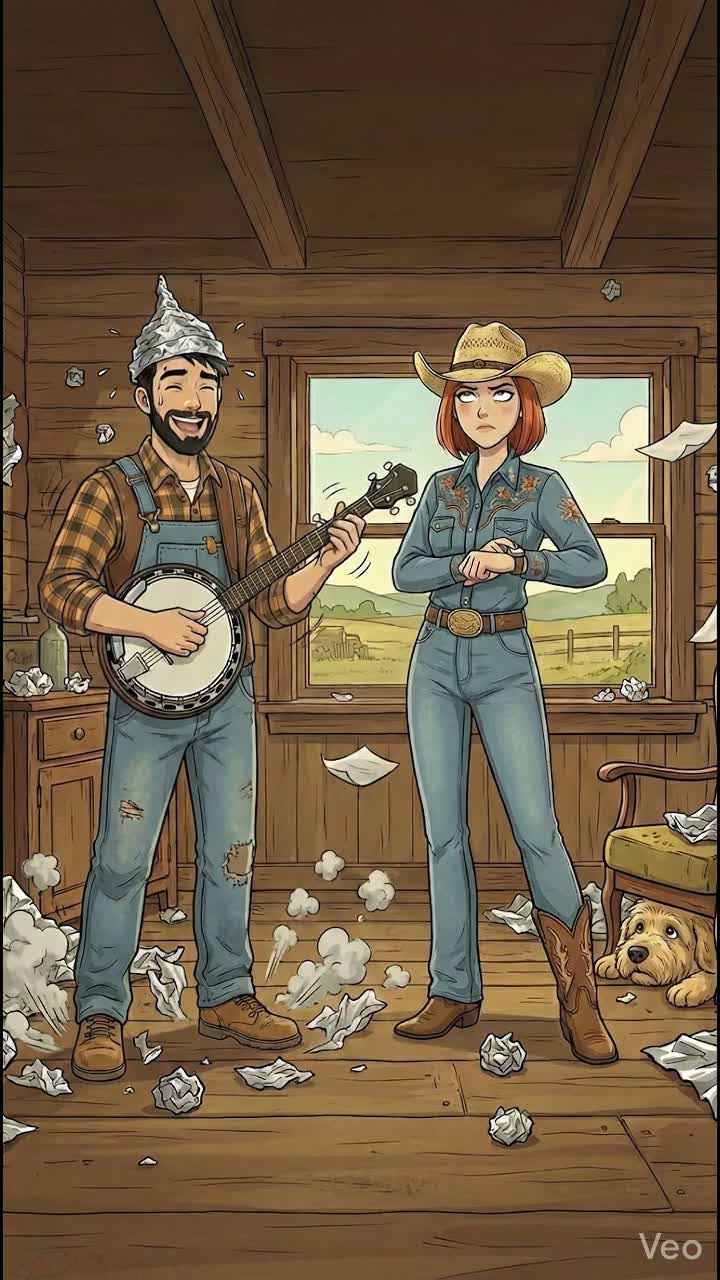 /Genres: Blues + Country with Western Roots Rap attitude, acoustic trap hybrid at 120 BPM (double-time phrasing), Key: D minor, 4/4 feel, outlaw story energy, /Vocals: Male lead, fast and clipped delivery, half‑spoken, half‑sung, Sarcastic tone, swinging between dry humor and sharp defiance, with aggressive, rhythmic shouts in the choruses and rapid muttering in the bridge, /Tempo: 120 BPM with double‑time phrasing (feels like a brisk rap over a slow stomp), strong forward push, relentless rant energy, /Instrumentation: Guitar and synth as the core, supported by percussive acoustic strums, upright‑style bass on downbeats, brushed drums snapping, and twangy electric hooks, Minimalist layers keep it raw and focused, /Structure: Intro (sparse guitar + light beat, tempo ramps) → Verses (rapid, clipped outlaw rap cadence) → Choruses (syncopated, shouted hooks) → Bridge (beat drops to bass + finger snaps, muttered flow) → Finale (returns to half‑time, final line delivered as a sneer)