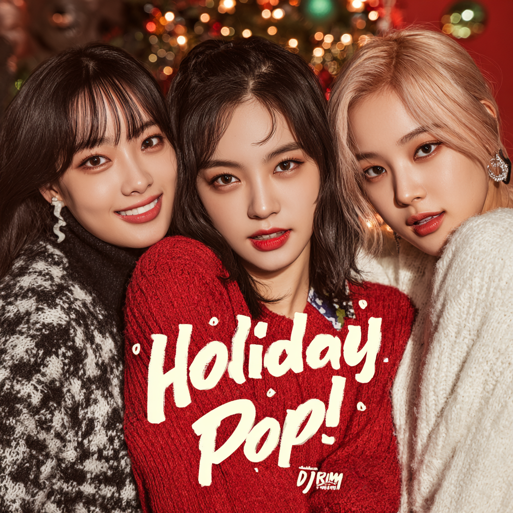 K-pop, classic festive dance-pop, soulful 90s-inspired chord progressions, bright grand piano foundation, lively brass stabs and orchestral strings, upbeat 4/4 rhythm, tambourine and sleigh bell layers, gospel-style backing choir harmonies, warm dynamic vocal ad-libs, bright mix with sparkling top-end, lush stereo reverb space, cinematic Christmas pop arrangement, modern dance groove with retro Motown influence, joyful tone with romantic winter warmth, reminiscent of timeless holiday classics