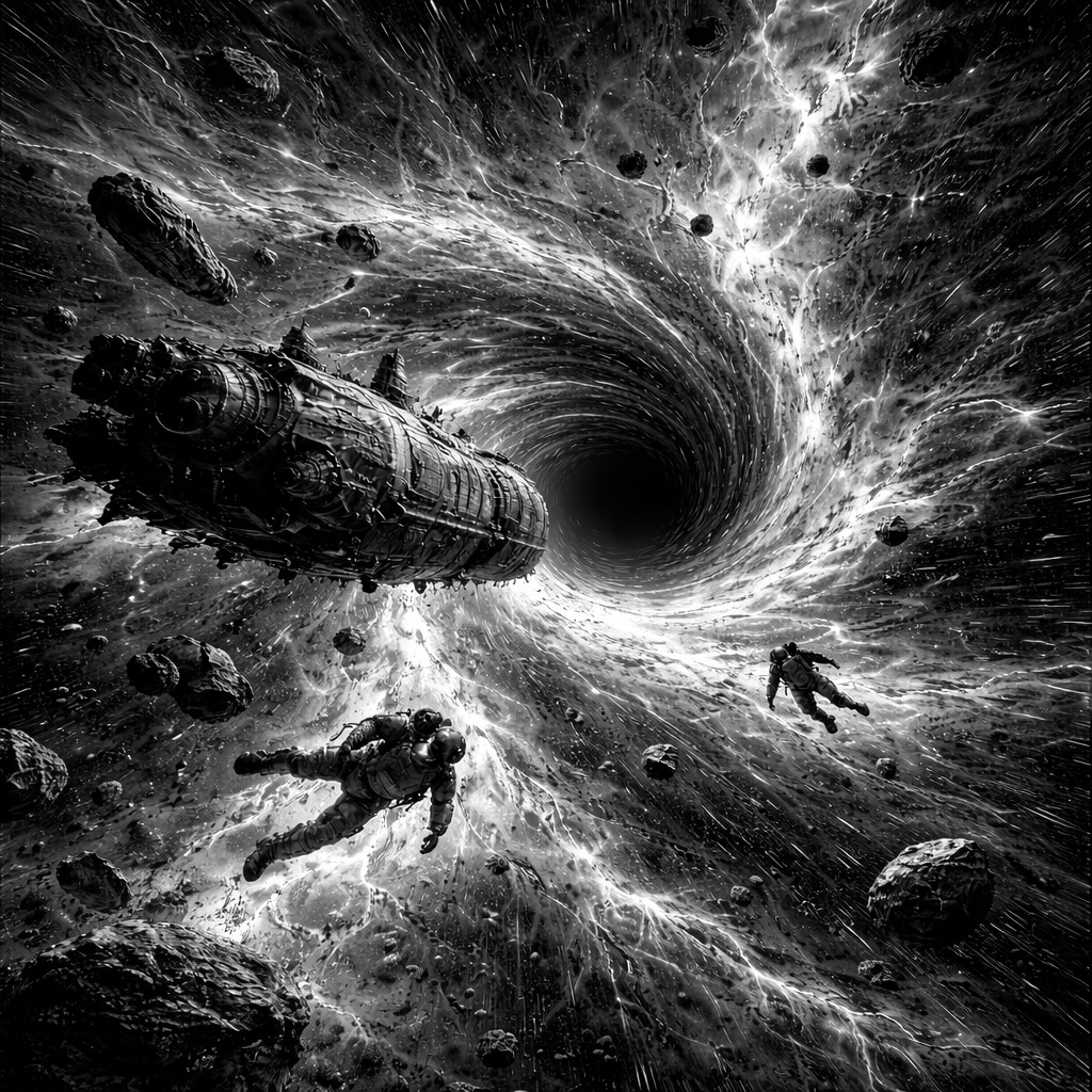 A dark and stoic, punchy progressive metal track, influenced by groove metal, Tuning Drop C#, 5/4 time signature, Wide stereo experience, Male baritone and Female gritty vocals, Avoid wall-of-sound, Polished production, clean, few textures, Intro is slowly built with powerful taiko-style percussion and low toms that create a relentless rhythmic foundation, Drums are acoustic and raw, Phrygian scales used, Deep and raspy voice, Clean vocal lines, Drum-led grooves and sparse production highlights the interplay; guitars and bass pulse with minimalist force, while percussion carves space, creating calm yet heavy passages, Melodic, prominent pure bass work, Song structure spirals, returning to ideas at higher intensity, escalating tension, Energy is built over hypnotic momentum, where listener gets absorbed, Guitar follow intricate polymetric riffing style