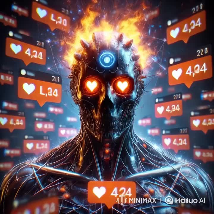 electronic, intense, industrial, chaotic, digital, glitch, self-destruction, emotional, psycho, fragmentation, haunting, explosive, crazy, online, validation, desperation, dehumanization, viral fame