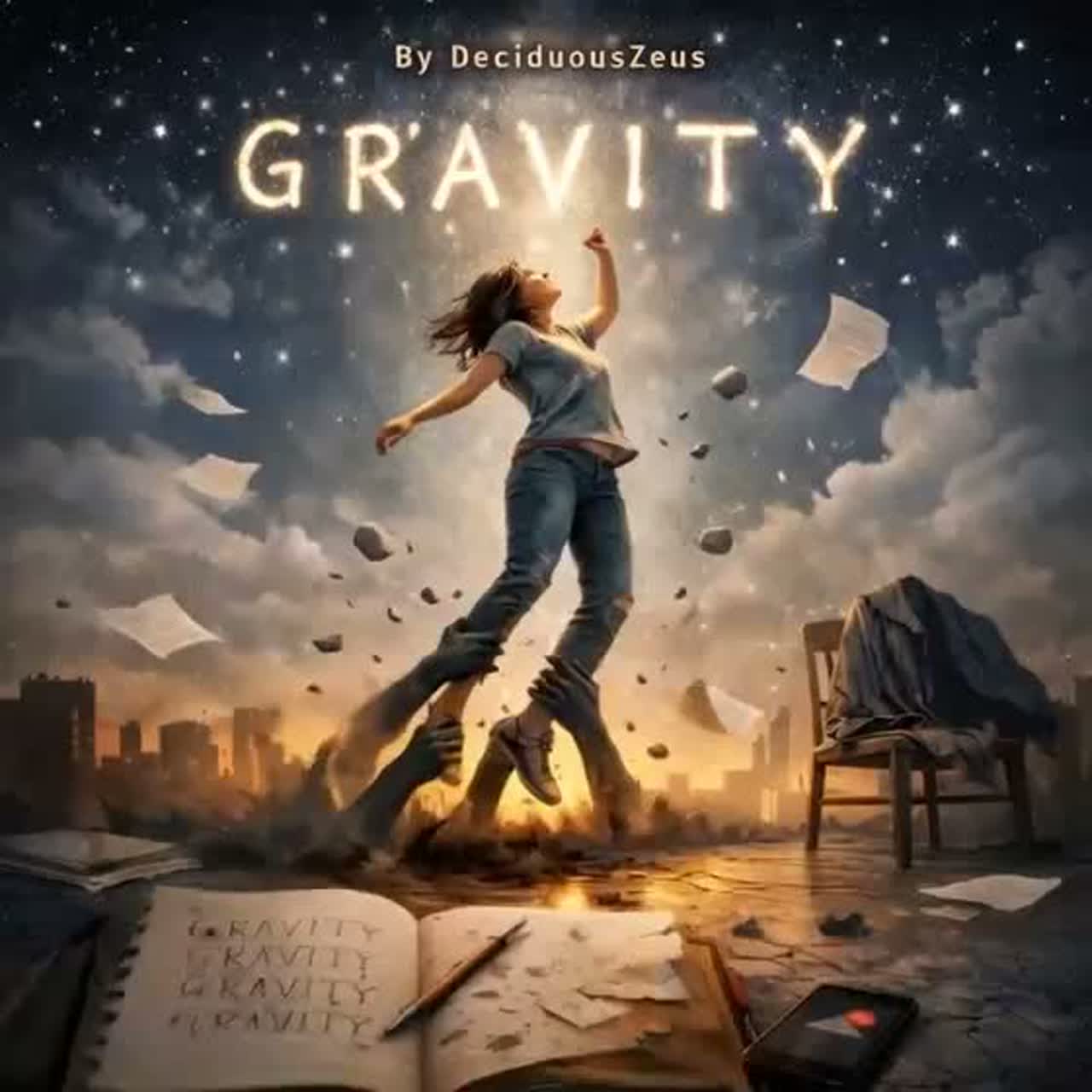 Moody alt-pop with male vocals; dry, close-mic verse over pulsing synth bass and tight electronic drums, then chorus widens with airy pads, octave-doubled lead, and compressed sidechain swell; subtle reverse FX around the word “Gravity” and a late-song lift with distorted backing harmonies for a haunted climax