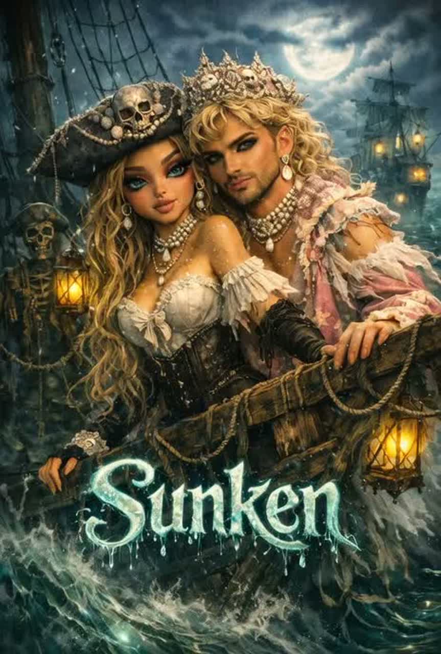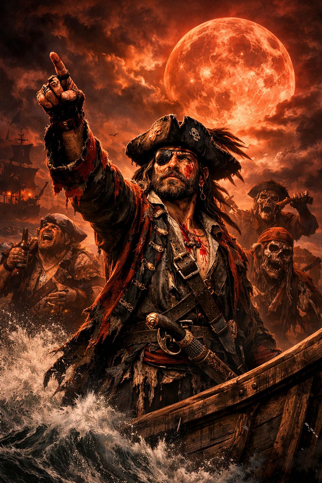 dramatisch traurig epochelaler melodramatisch Shantyhop Song, mit metal, rock, country elemente und Shantyhop chor canon, male vocals, tiefe männliche gebrochene traurige Stimme mit starken spitzen, rauchige stimme mit einer typischen Piraten stimme und Piraten Chor Shanty style im hintergrund und im Refrain sehr stark vertretten als unterstützung„Dramatische Piraten-Rock-Ballade über verlorene Liebe, das Meer als Fluch, Unsterblichkeit als Last und eine gebrochene Seele auf der Suche nach Erlösung, Düster, emotional, bittersüß und hoffnungsvoll, Betrunkene Kriminelle Piraten metal shanty singen leidenschaftlich und mit voller herzblut und emotional einer weint beim singen bei einer intensiven song phase