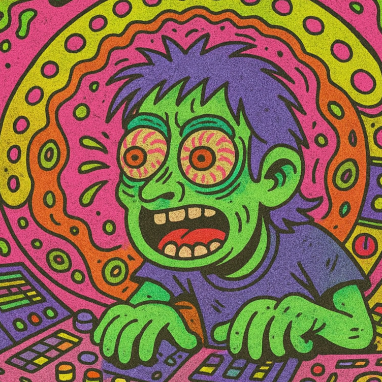 Chiptune Dark Psytrance, Dark Psytrance with 8-Bit Destruction, Glitchcore Acid, Broken Console Soundtrack, Bitcrushed acid synths, arcade guns, Chaotic, Hypnotic, Digital Nightmare, Epic, Rave