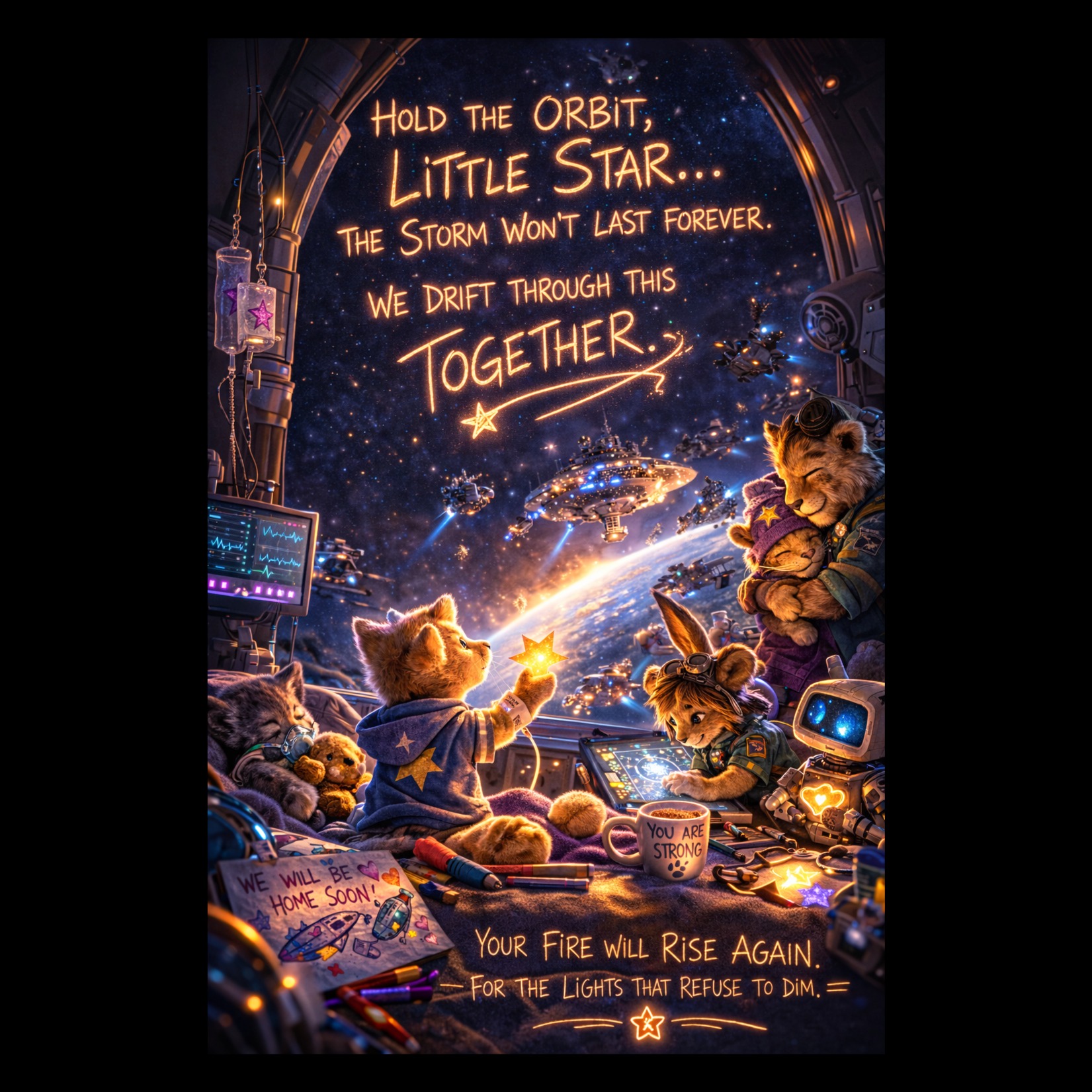 cinematic dark folk dub, ambient space folk, indie film soundtrack, hopeful atmospheric charity song, deep cinematic cello, bowed cello swells, emotional cello melody, warm sub bass, heartbeat rhythm, soft hand percussion, subtle shaker rhythm, layered female harmonies, distant vocal textures, echo vocals, ambient pads, slow tempo 78 bpm, ‑aggressive, ‑screaming, ‑belting vocals, ‑heavy metal, ‑death metal, ‑screamo, ‑hardcore punk, ‑trap beat, ‑drill beat, ‑gangsta rap, ‑mumble rap, ‑EDM festival drop, ‑dubstep drop, ‑brostep, ‑glitchcore, ‑hyperpop, ‑rave synth lead, ‑techno club beat, ‑fast dance tempo, ‑high BPM, ‑chaotic tempo shifts, ‑distorted guitars, ‑harsh distortion, ‑screaming vocals, ‑rap verse, ‑spoken rap, ‑gospel choir, ‑church choir, ‑worship music, ‑praise music, ‑christian music, ‑hymns, ‑hallelujah chorus, ‑church organ, ‑sermon style vocals, ‑preacher voice, ‑televangelist tone, ‑children nursery rhyme, ‑cartoon voices, ‑chipmunk vocals, ‑comedic tone, ‑parody song, ‑meme song, ‑silly lyrics, ‑explicit lyrics, ‑profanity, ‑horror atmosphere, ‑villain theme, ‑jump scare sounds, ‑clown music, ‑circus music, ‑robotic autotune abuse, ‑vocal glitches, ‑glitch vocals, ‑AI stutter artifacts