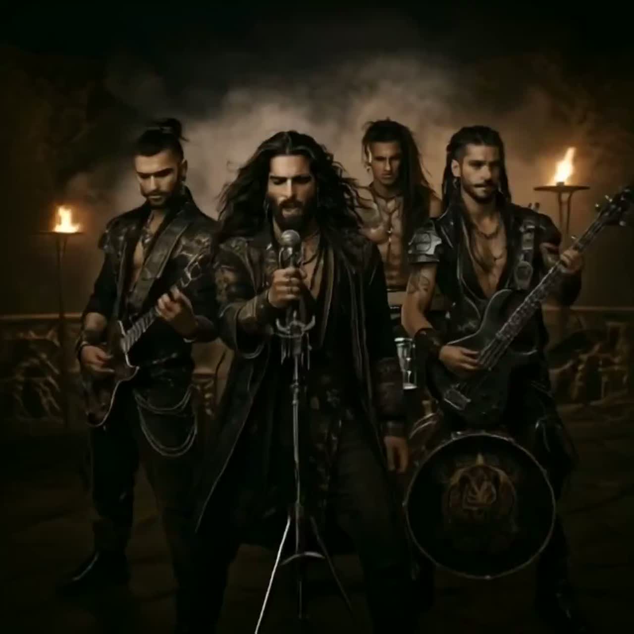 Dark cinematic epic pagan metal with Arabic folk + Greek ritual vibe, Whispered ancient Greek intro (very quiet), then tribal drums, English male vocal verses, deep, storyteller, Big emotional epic chorus, powerful, no screaming, no female vocals, Middle: short Arabic chant with framedrum, respectful, Final chorus bigger and cinematic, Order: Greek intro → English verses/chorus → short Arabic break → English final chorus, Tempo ~92 BPM, Instruments: oud, darbuka, bouzouki textures, big metal drums, wide guitars, Mood: ritual, ancient, mystical, prophetic, serious, No pop, no EDM
