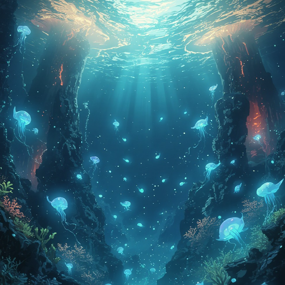 Japanese Techno, Minimal Techno, Ambient, Cinematic, Ethereal, Dark, A minimalist and hypnotic track with a relentless 4-on-the-floor beat, evoking the cold, immense pressure of the deep sea, The soundscape is built with layers of repetitive synth pulses, deep sub-bass, and subtle, glitchy percussive elements, Vocals are delivered in a calm, almost robotic manner, creating a detached and introspective atmosphere, The climax is not a drop but a gradual addition of beautiful, clear synth layers, creating a sense of quiet power and unity, The overall mood should be both meditative and subtly euphoric, reflecting the silent, powerful force of life in the absence of light