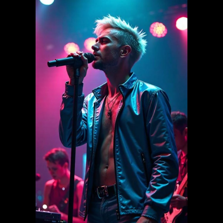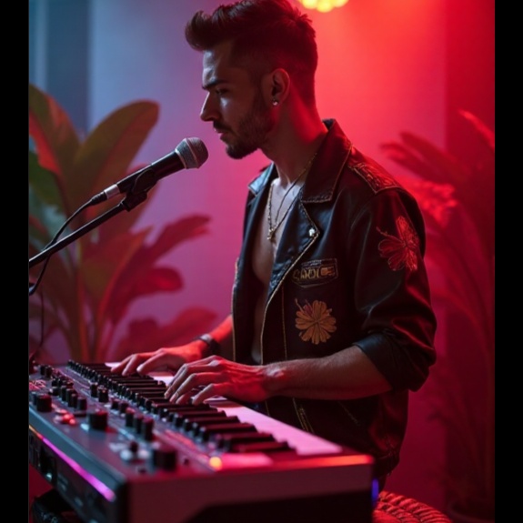 Italo Disco Nocturnal, Eurodance Edm, Synthpop Europop, Uplift Emotional Eurodisco, Dark Love Melodic malevoice, 80s Punk, driving 80s new wave dark synthpop synths and crisp EDM percussion, Tubular bells and minor-key pads evoke nocturnal romance as dual melodic male Latino- vocals—mixing falsetto and R&B phrasing panning effect vocals