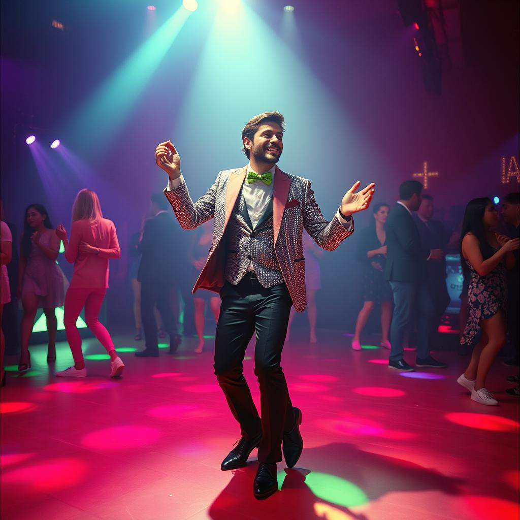 A massive club-disco-dance banger exploding with heavy low-end bass, thunderous kick drums, and hyperactive percussion, Rapid tempo shifts, pounding four-on-the-floor beats, and metallic snares create nonstop dancefloor pressure, Over-the-top, comedic male yodeling vocals clash with wild DJ scratches, distorted synth stabs, and cheeky synth-piano riffs, Deep sub-bass growls and punchy sidechain compression make the rhythm hit like a cannon, Detuned synths swirl in 3D stereo, bouncing left-right-up-down through chaotic drops and explosive transitions, Percussion layers blend electronic toms, claps, and breakbeat fills into an unstoppable groove, The atmosphere is loud, bold, and euphoric — part rave, part comedy, all energy, Every element drives pure festival madness: huge drops, warped filters, shimmering highs, and rolling low-end waves that shake the floor, Outrageous, funny, and irresistibly danceable — a total club meltdown