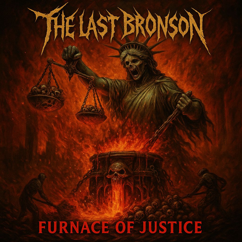 [Studio quality, wall of sound] aggressive thrash metal with violent energy and explosive vocals, inspired by Slipknot, Mudayne, Pantera’s Suicide Note Pt, II, Anthrax, and Metallica’s Dyers Eve, Brutal, chaotic riffs with pinch harmonics, fast tremolo picking, and squealing divebombs, Relentless double-kick drumming and psychotic tempo shifts, Screamed and spitfire vocals with raw fury, Includes spoken intro and whispered breakdown build that erupts into full-speed chaos, [Lyrical themes of vengeance, righteous fury, and justice; Lady Liberty as an unstoppable force stomping cancel culture mobs] [Breakdown is unhinged like Suicide Note Pt, II] [Gang vocals timed with stomps; outro whispered then screamed]