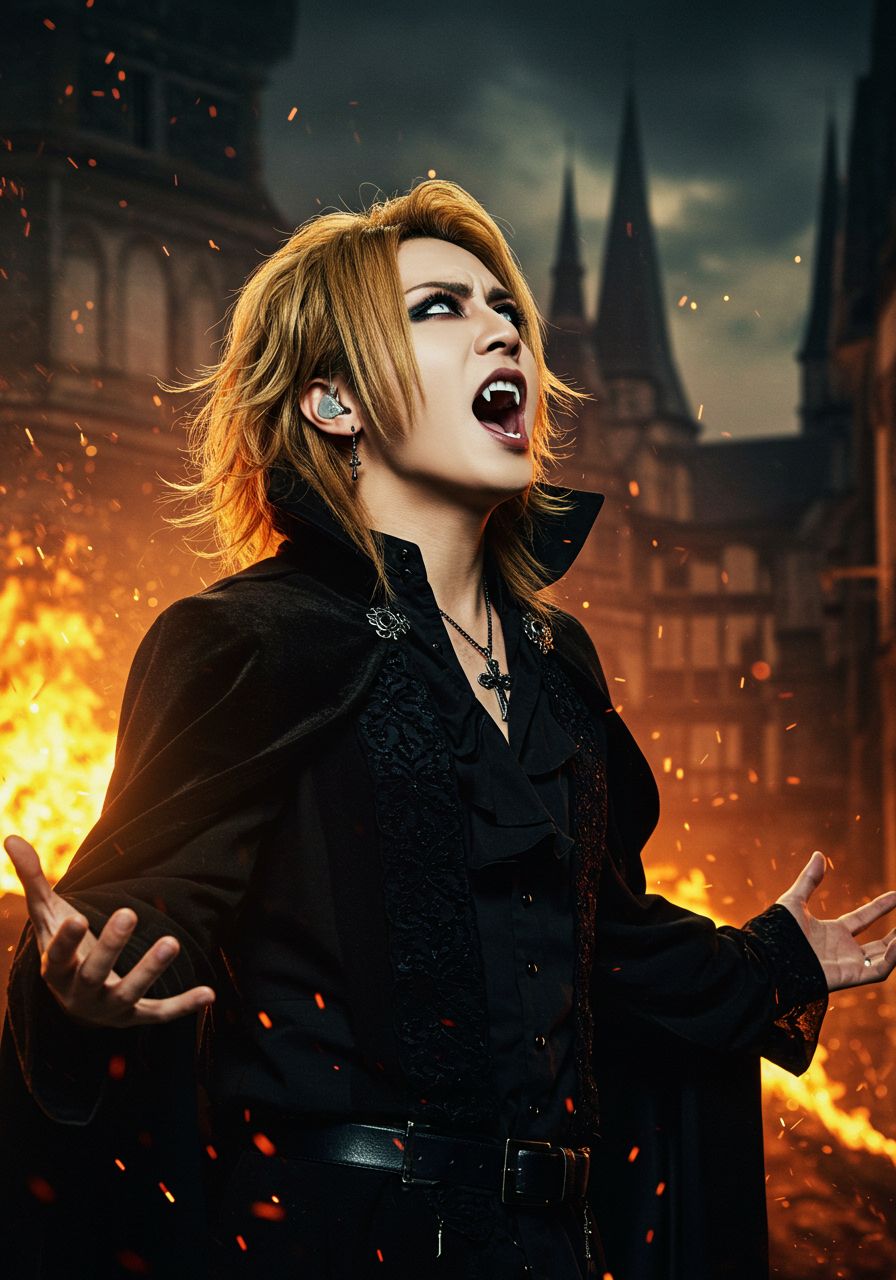 Experimental Visual Kei Metal, Dark Progressive Metal, classical, high speed paced, male lead vocal-melancholic and dramatic vibrato and gliss up and falsetto and deep voice and wide vocal range and emotional and slightly husky yet clear tone, all of menbers backing vocals-powerful call-and-response harmonies, lead guitar-melodic riffs and technical soloing sections, rhythm guitar-heavy chords and breakdowns, bass-aggressive slap technique and deep resonating low-end, drums-high speed double bass and intricate fills and dynamic tempo shifts