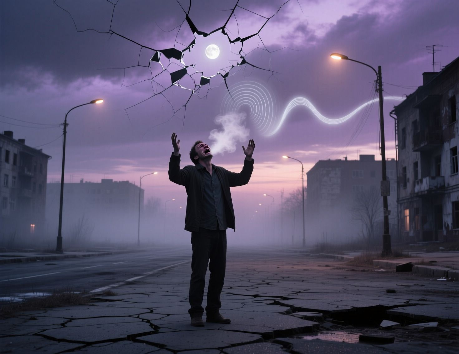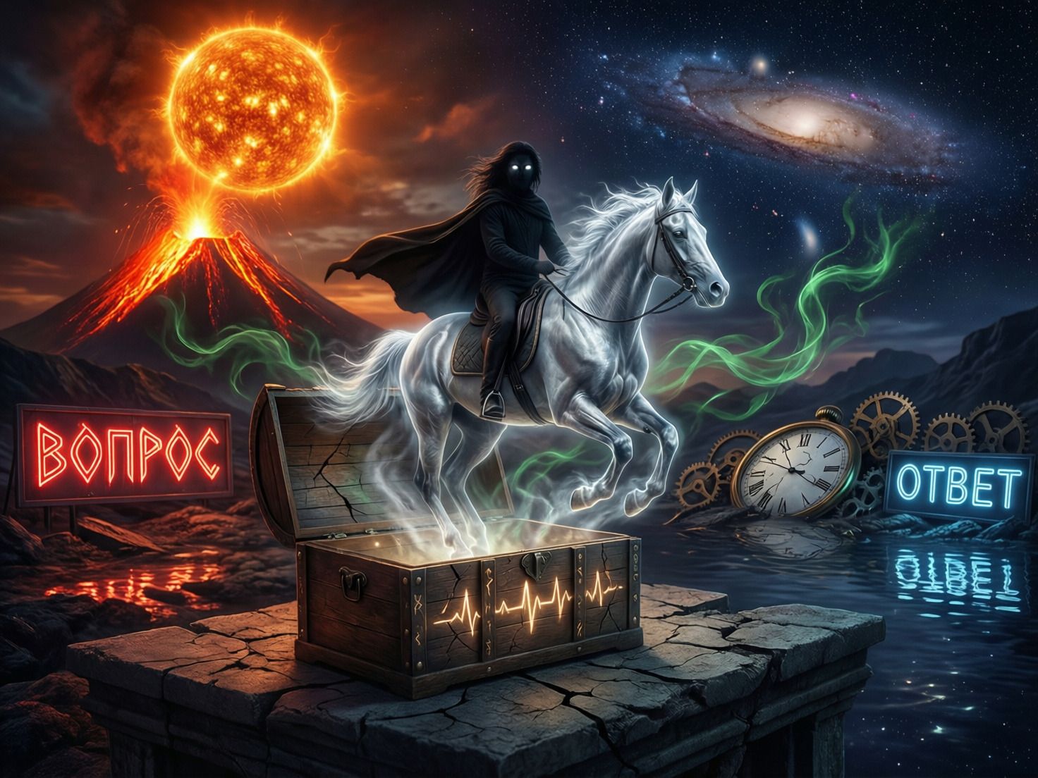Russian rock, fast tempo, gothic rock, art rock, mystical atmosphere, synthesizer, philosophical lyrics, Male vocal in the style of atmospheric, poetic Russian rock with gothic and romantic overtones, carrying a quiet intensity and introspective melancholy, It should sound theatrical yet restrained, with a smoky baritone tone, rich in low-mid frequencies, The delivery is deliberate and expressive, almost like spoken poetry set to music, with subtle vibrato and dramatic phrasing that builds emotional tension