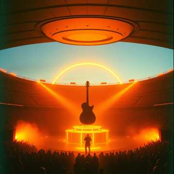 male vocal lead supported by AI-vocoder harmonies and low male choirs, Crowd chant layers (“oh-oh-oh”), huge atmospheric reverb, spotlight FX, anthemic chorus designed for tens of thousands singing along, Inspirational, triumphant, AI-human fusion theme with emotional lift, No neon clichés, no robotic monotony—clean, powerful, stadium-ready