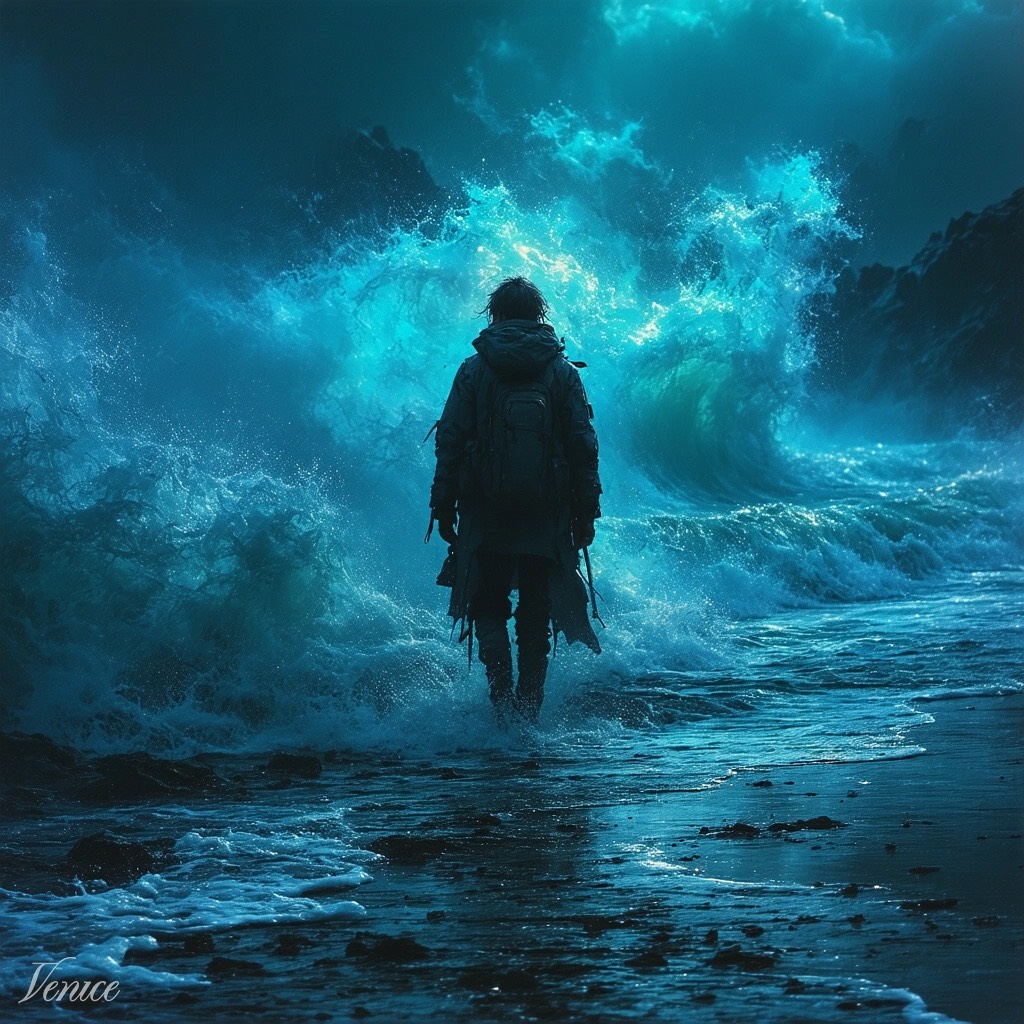 Smoke-lit stage, pulse at 122 BPM, Baritone enters first—low, magnetic, steady as thunder: “I saw the skyline flicker blue again, ”