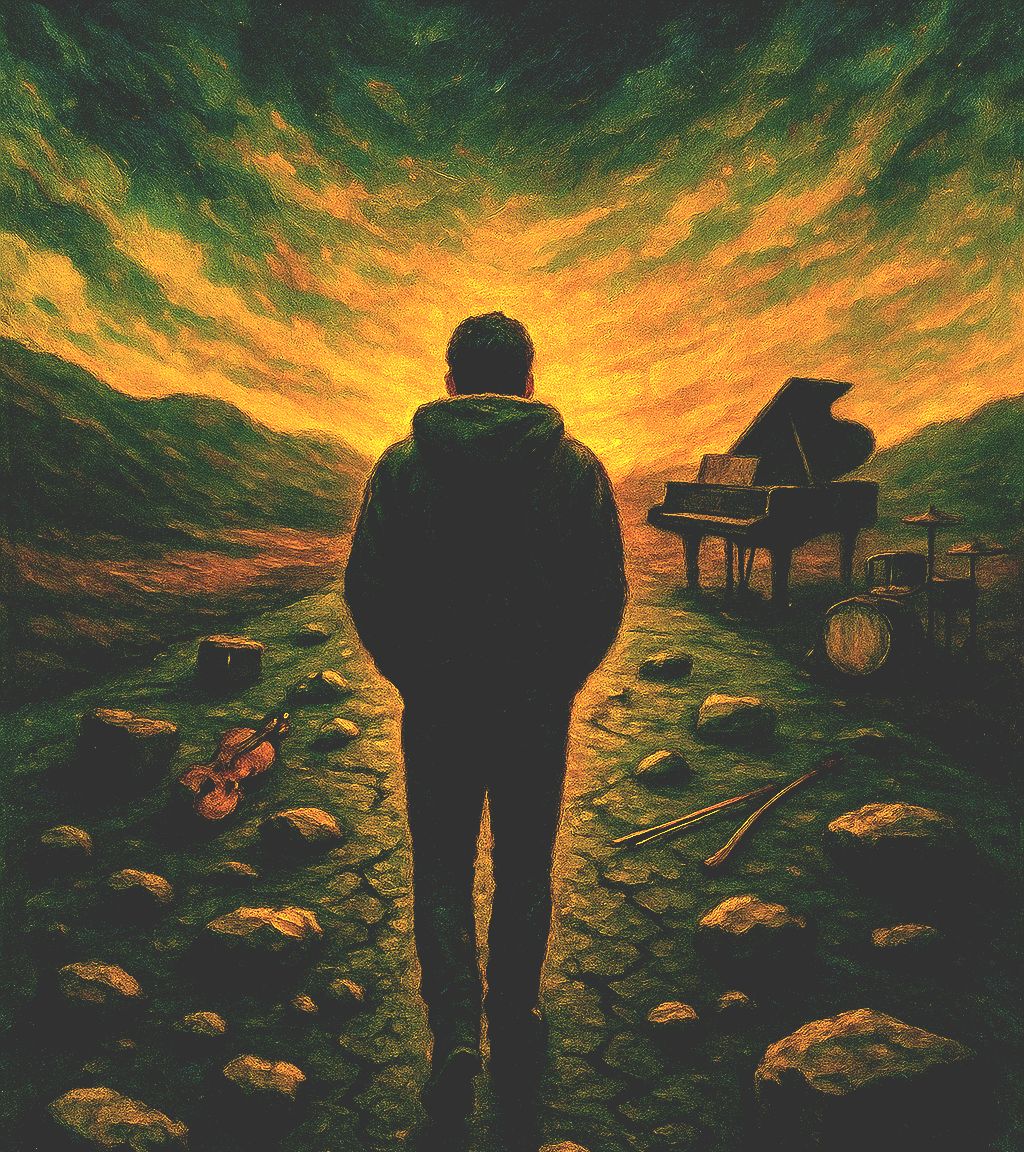 Create a live cinematic US-German hip-hop concert track at 130–150 BPM, piano-rap with dramatic grand piano themes, lush string carpets, and warm brass accents, fat 808 bass, deep subs, 16th-kick drive, crisp snares, and explosive marching-band snare solos directly inspired by Devin Miles’ Drumline battle performance: rapid-fire rolls, double strokes, quadruple bursts, sudden stop-and-go accents, and tight call-and-response snare patterns before every drop, Layer these with futuristic synth textures and subtle G-funk flavor cinematic rain and thunder, long reverb tails, tension risers, and real crowd energy, male only, melodic-rap style blending style Maroon 5's fragility with street grit, poetic rap storytelling, massive male choir with gospel warmth, shaped into a smooth 90s West Coast melody, uplifting and catchy, ambient rain + solo piano intro → orchestral rise → beat explodes with orchestral-electronic fusion → choir hook with stadium intensity, Concept: a sacred street symphony