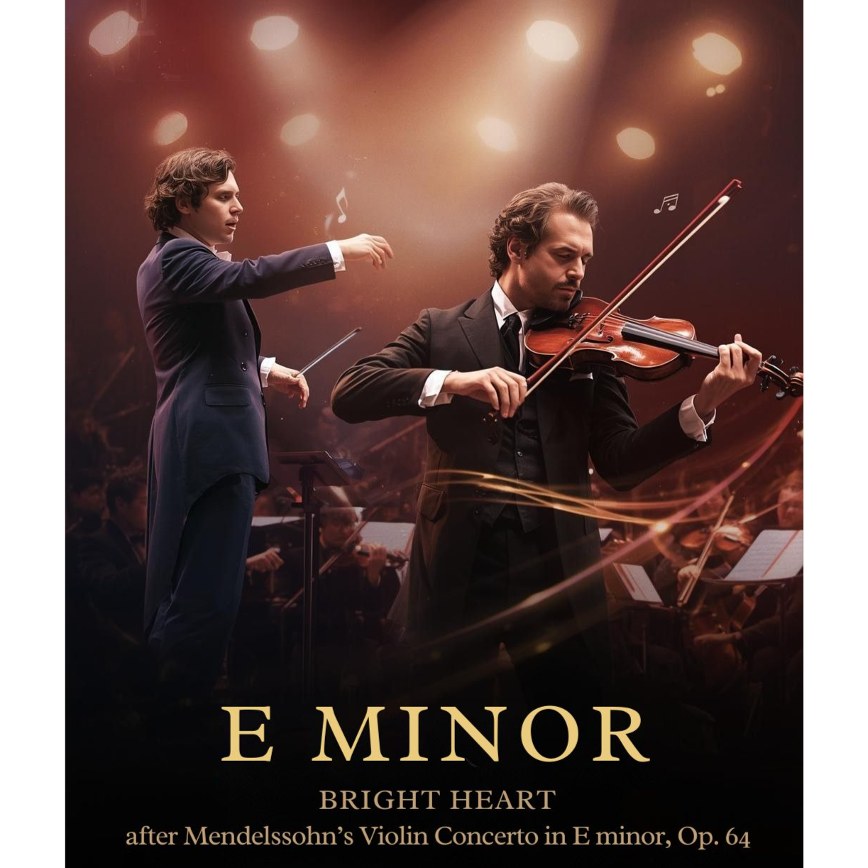 E minor, Neo-Romantic orchestral pop × cinematic indie rock, The arrangement should be driven by a lyrical solo violin as the main voice, supported by warm strings, woodwinds, and a modern band (piano, bass, light drums), No heavy rock guitars; keep the texture elegant and flowing, The verses feel intimate and slightly melancholic, with gentle piano and soft strings, The choruses open up with soaring violin lines and fuller orchestra, conveying hope and forward motion, Overall mood: passionate but refined, youthful yet touched by Romantic-era wistfulness, like Mendelssohn running through a night city toward the concert hall, full of work, friendship, and expectation, Female or male vocal, clear and emotional, not overly gritty