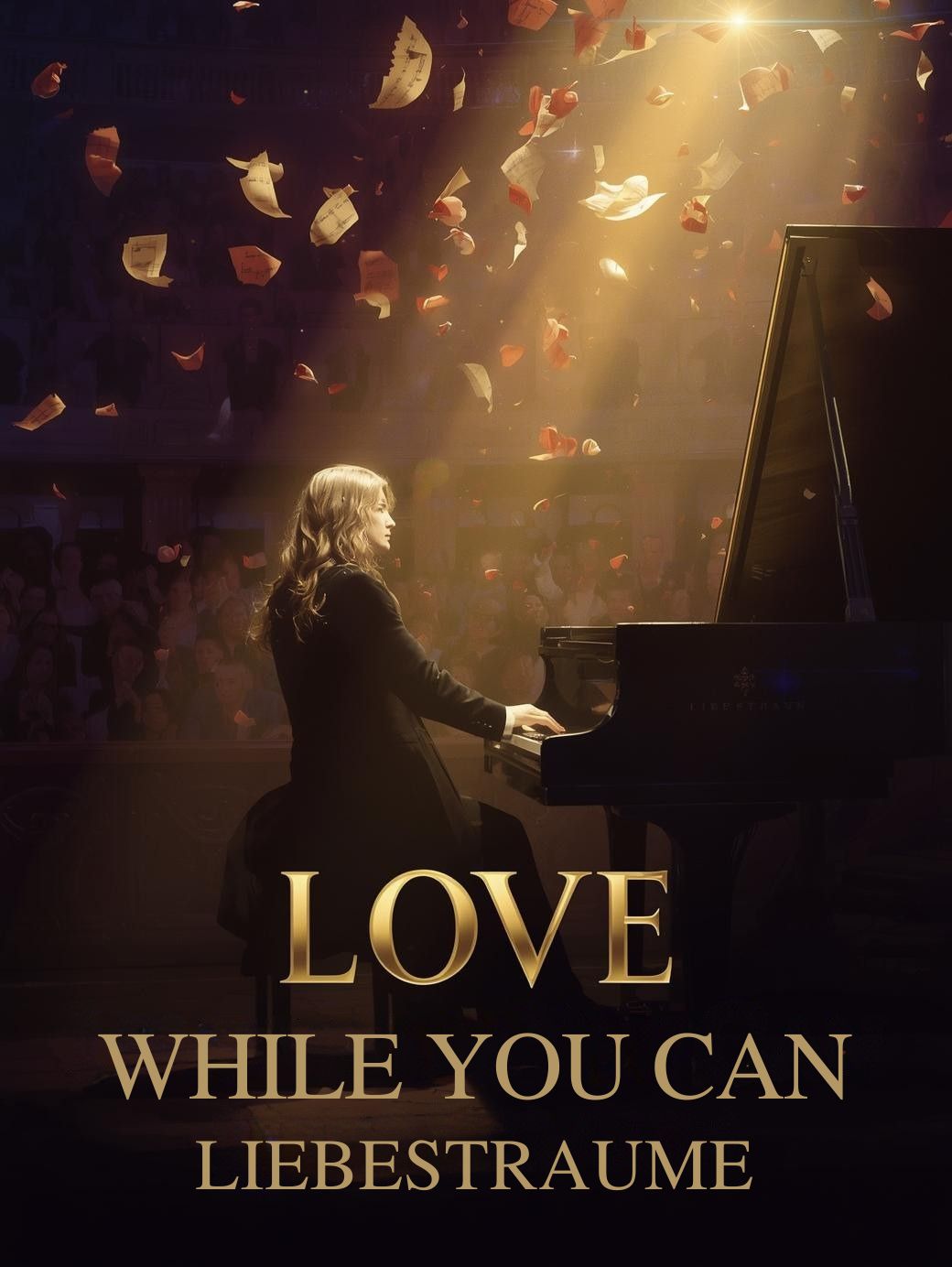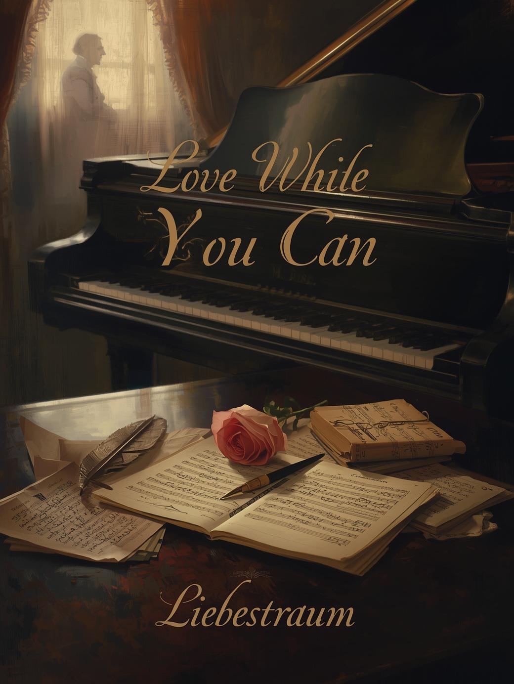 Begin with the “Liebestraum” motif on expressive grand piano, rubato and lyrical, Chamber strings glide in subtly, swelling with elegance, never overpowering, Warm sub-bass and soft, brushed neo-soul drums enter swiftly, merging modern groove with classical textures, Occasional harp or celesta highlights add glow, never sounding twee, A warm, intimate male vocal—breathy yet poised—carries the melody, phrasing with adult sensitivity, Chorus appears early, with piano, R&B pulse, and strings interwoven seamlessly for a slow-burn, bittersweet romantic feel