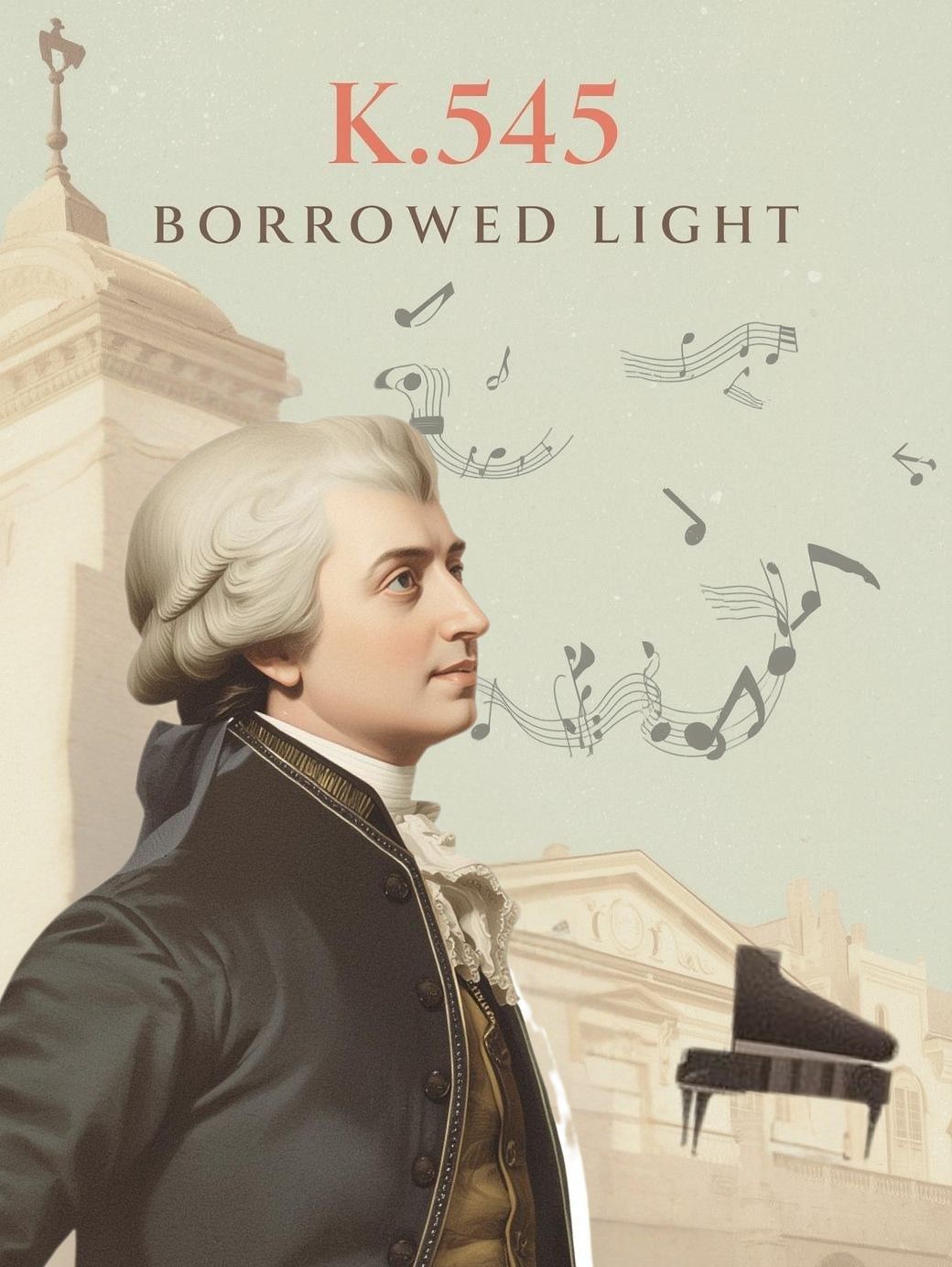Classical chamber-pop × elegant electronic indie, with Viennese salon energy, Crisp fortepiano/piano leads the rondo-like motif, supported by warm chamber strings (no music-box or toy-like synths), Add subtle modern groove: soft brushed drums or tasteful electronic kick, mid-tempo (around 88–96 BPM), Texture should feel witty, refined, and adult — playful but not childish, Vocals: youthful male voice, warm and conversational, lightly ironic smile, NOT childlike, NOT cartoonish, Harmonies minimal and elegant, chorus soaring but graceful, Short intro, chorus comes in early; avoid long pure-classical opening, Mood: bright resilience under pressure, Viennese charm with a hint of financial anxiety, ‑K, ‑545: Borrowed Light
