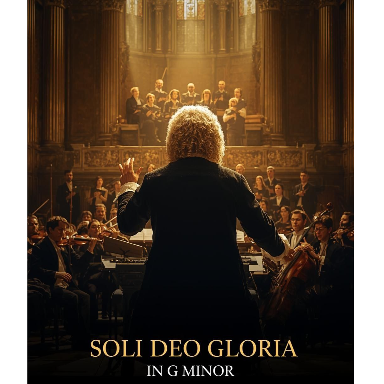 The organ is treated as a synthesizer, surrounded by warm pads, subtle electronic rhythms, and ethereal choir textures, The song begins in G minor with a sense of reverent darkness and slowly modulates toward a bright major resolution, symbolizing light breaking through faith, Vocals are English + German combined naturally, sung with intimate emotion, no narration, modern cinematic minimalism with emotional piano, ambient strings, and sacred warmth