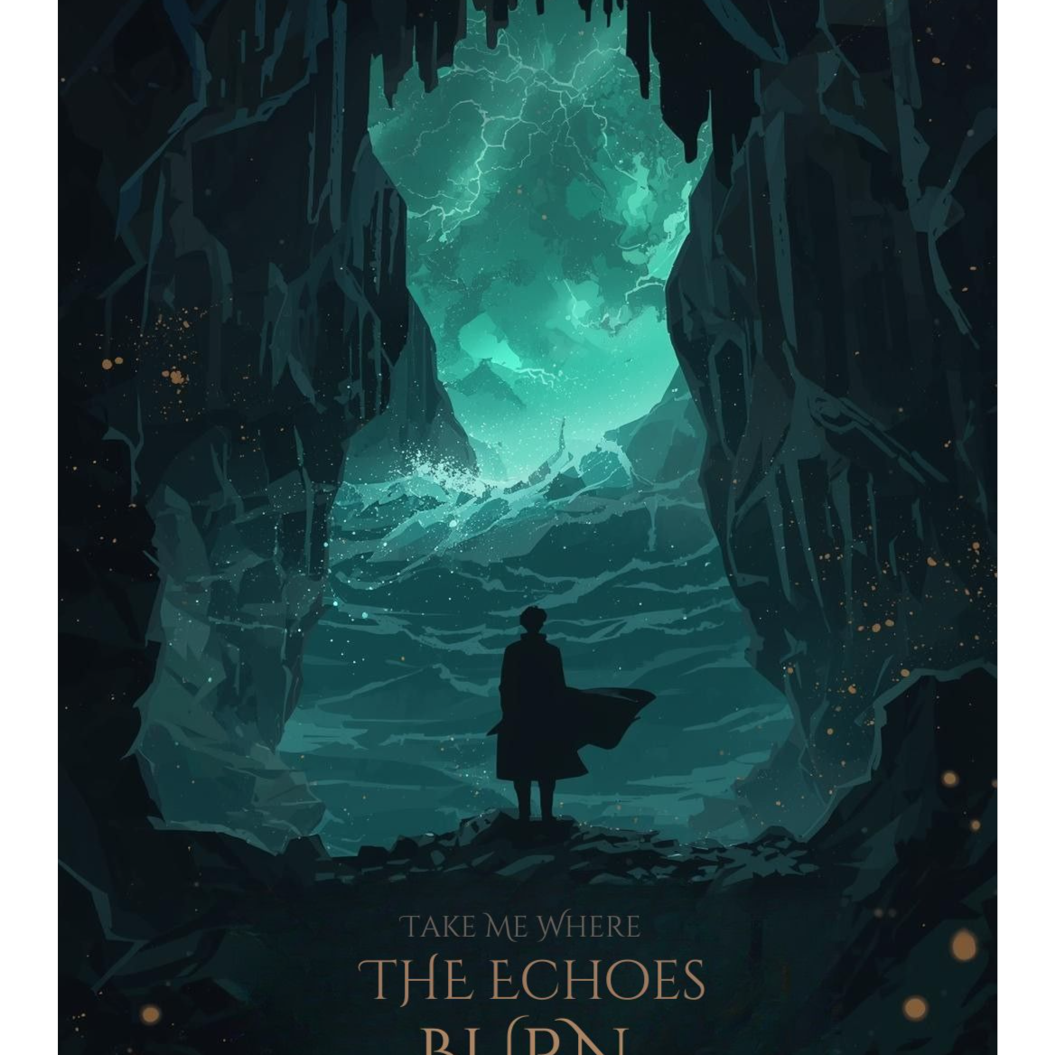 Dark cinematic pop × electronic indie with soundscape design, Use deep sub-bass to represent the cave resonance, soft granular synths for water spray, and wide cavern reverb to simulate Fingal’s Cave, Include distant ocean rumble, subtle wave crashes, and rhythmic low-frequency pulses, Vocals should be haunting, breathy, and intimate, layered with atmospheric harmonies, German spoken-word narration should appear with heavy reverb like echoing in stone, No heavy drums; instead, use heartbeat pulses, low toms, or electronic thuds, Overall mood: mysterious, majestic, slightly ominous, sea-lit, inspired by Mendelssohn’s journey
