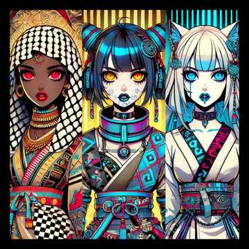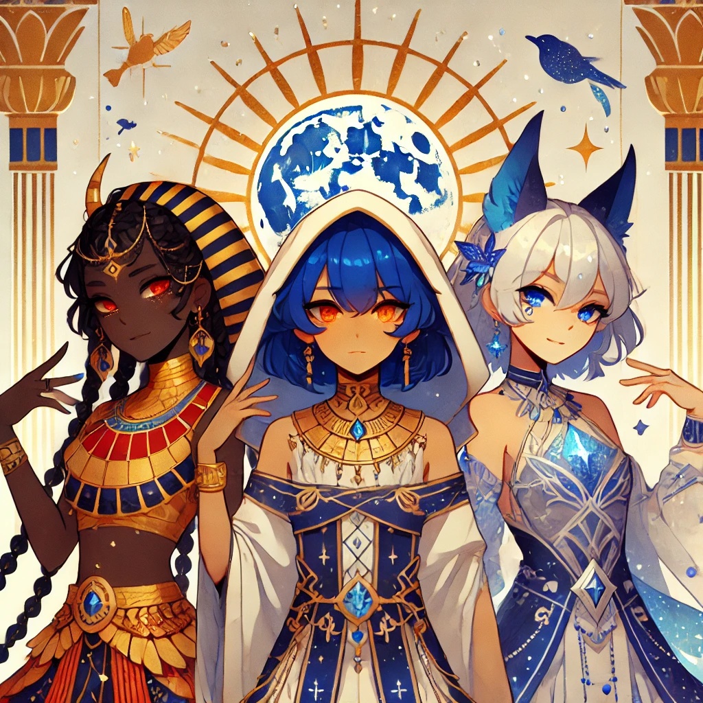 female vocals, Egypt style, aggressive, crazy, dark alternative djent, dark, eerie, k-pop, Idol, trio, Idol group