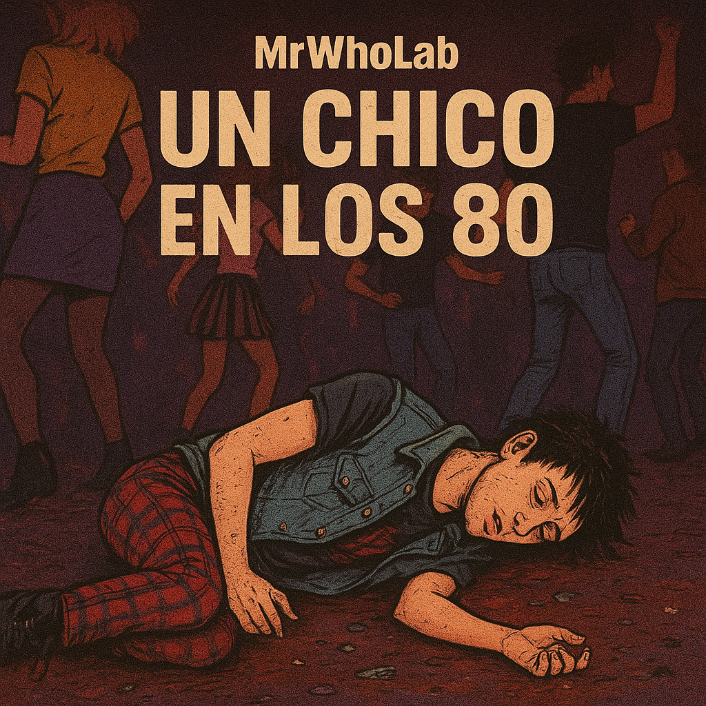 Spanish Post-Punk with a raw Punk Rock heart, circa 1984, The foundation is a relentless, driving bassline playing a repetitive, hypnotic hook, locked in with fast, tight punk drumming, Over this, angular, reverb-drenched guitars play dissonant, minor-key melodies, using subtle chorus and delay to create a cold, cavernous atmosphere, The male vocals must capture the core duality: a sneering, youthful defiance on the surface, but with an underlying tone of hollow, desperate sorrow, Production is crucial: lo-fi, raw, and spacious, Imagine Parálisis Permanente or early The Cure covering a lost punk anthem, The sound of a frantic, desperate dance on the edge of a void