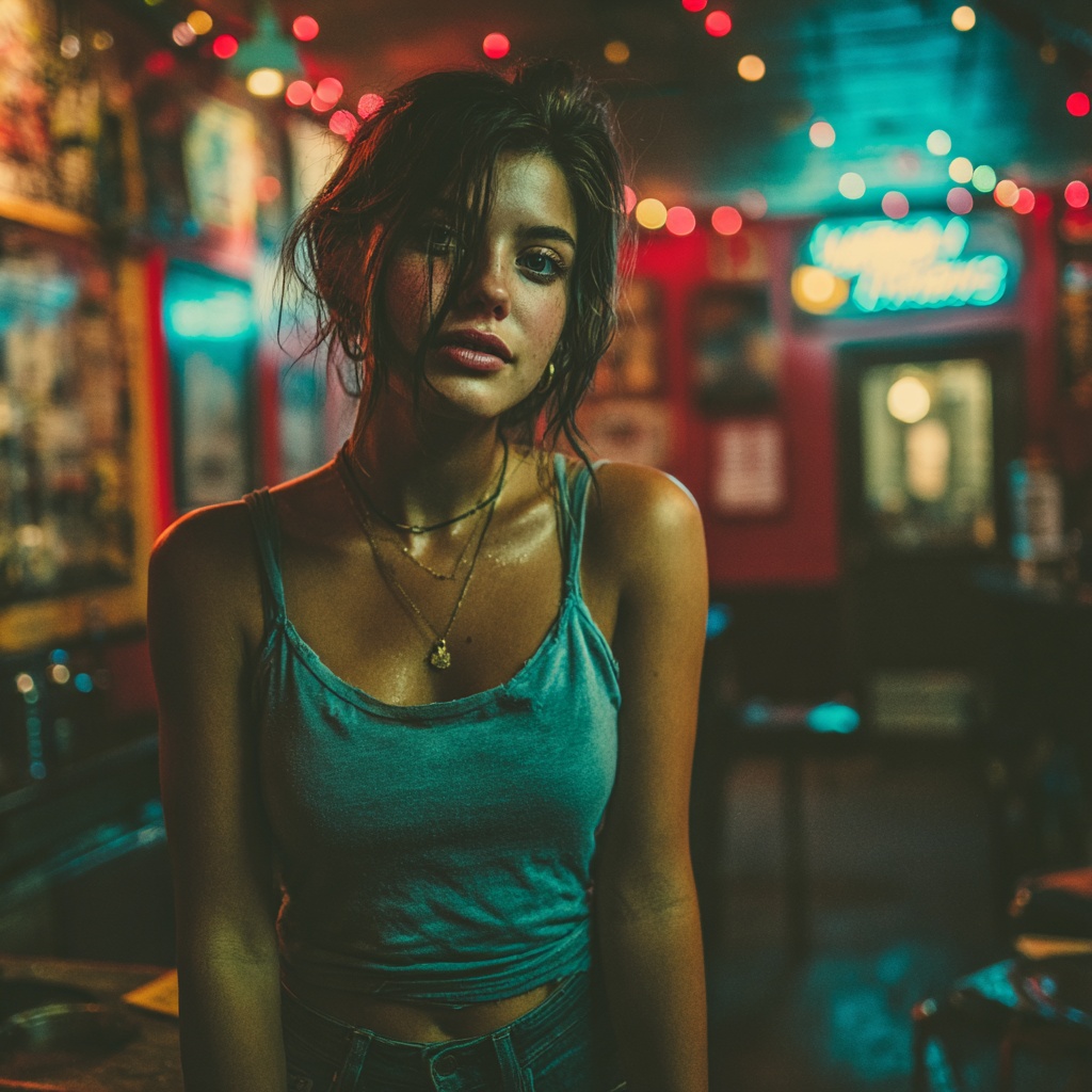 Female voice raw, a little husky, like sittin’ next to you, spillin’ a story over a drink, The verses are soft and intimate, pullin’ you into this quiet ache between two folks too shy to make a move, their passion simmerin’ like a slow-burnin’ candle, When the chorus hits, it lifts just enough, right, but not flashy, layered with warm harmonies that feel like a deep breath of hope, The bridge gritty, heartfelt, full of soul, with just a pinch of optimism, ‑No Male Vocals