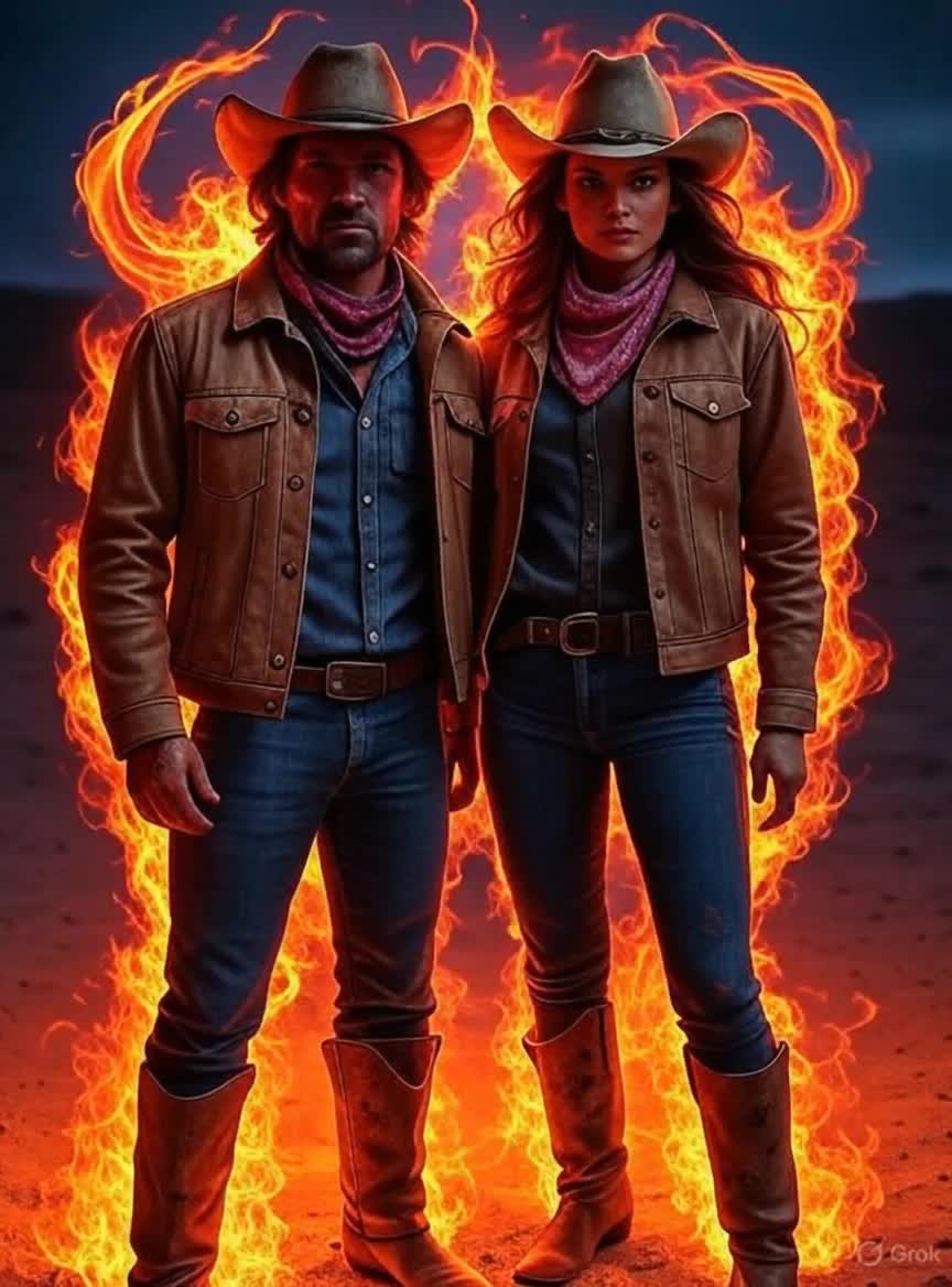 1970s Nashville classic country with outlaw edge, mid-tempo (110 BPM), shuffle feel, honky-tonk swagger, Volatile duet, female and male, blending heartache, tension, explosive energy, Verses trade lines, counterpoint, unison for shared emotion, Female: Alto to mezzo-soprano, warm, emotive, slight vibrato, gritty highs, chest voice, head voice for chorus peaks, defiant, vulnerable, assertive in bridge, Male: Rich baritone, raw, nasal edge, brooding, mid-low range, slides into notes, cocky to desperate, reckless phrasing, Harmonies: Tight thirds/sixths in chorus, prominent refrain, call-and-response bridge, female leads, male echoes, Rhythm: Driving snare, walking bass, Steel Guitar: Mournful slides, intros/interludes, Acoustic Guitar: Bright, percussive chords, Electric Guitar: Twangy, gritty fills, Fiddle: Fiery runs in break, Piano: Sparse honky-tonk chords in bridge, Vocals forward, reverb for warmth, fiddle/steel evoke flames, outro soft, haunting