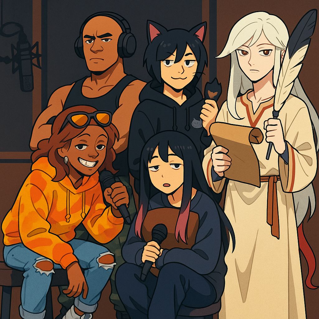Good evening, I’m Yamiyo -anthem-, Love cats more than meals, Skill: taming strays—means they sit on my lap, Meow, BPM ~92, old-school hip hop beat with light jazz samples, steady kick/snare groove, Each verse in a different vocal tone: deep male, bright female, silence/whisper, soft male, Add crowd noises and playful interjections for a live cypher feel