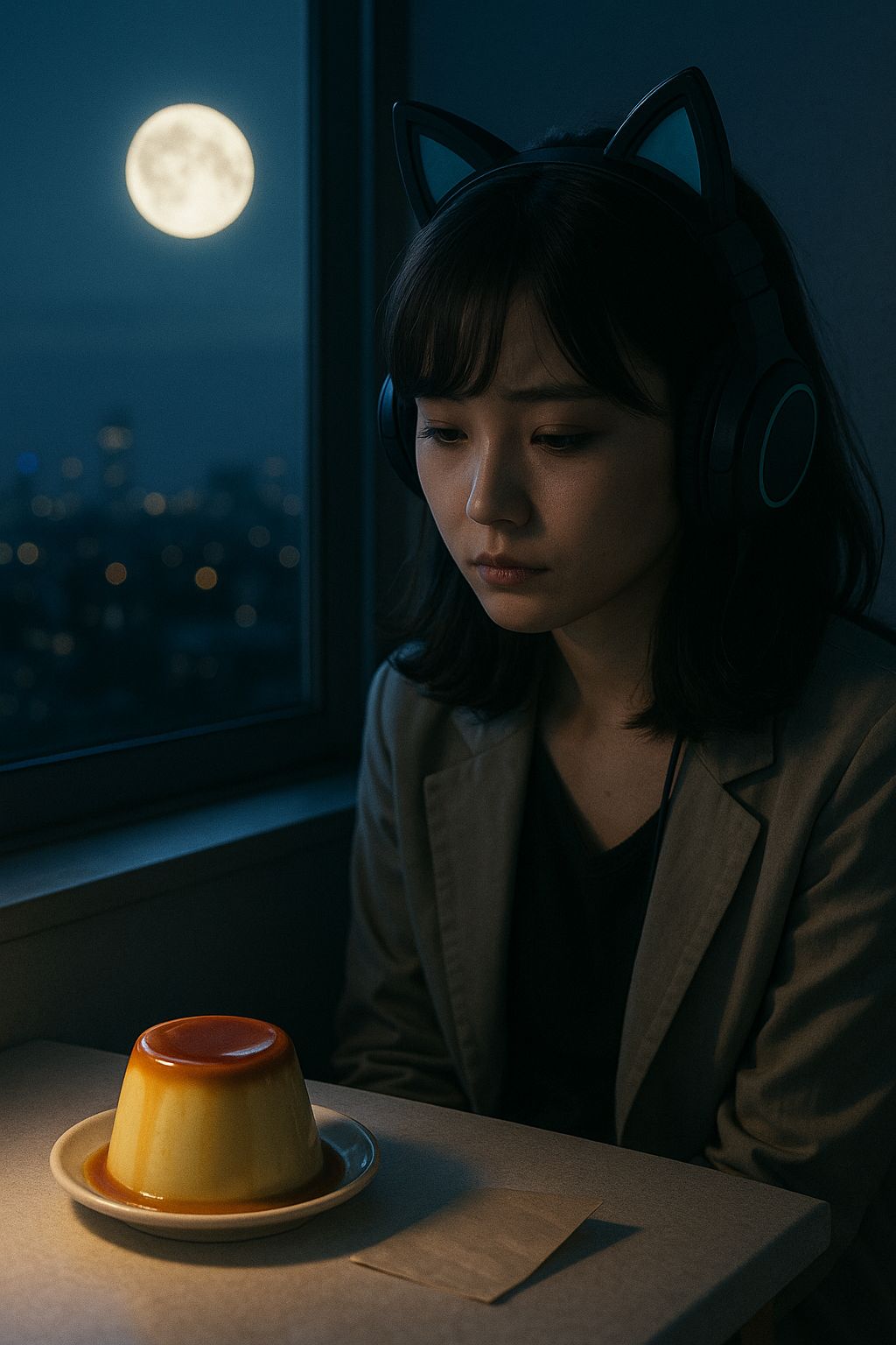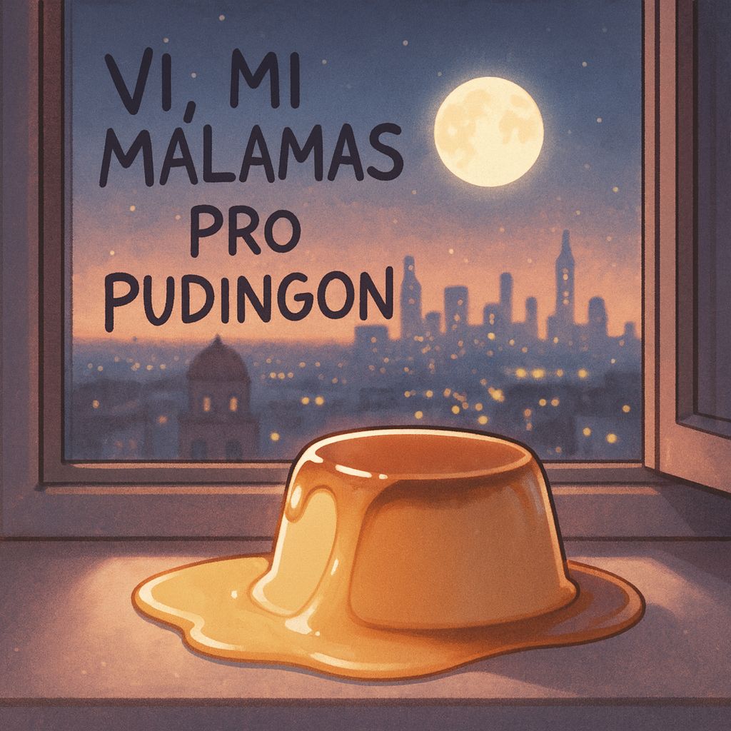 kawaii liquid funk with emotional enka-inspired melodies and Japanese Showa ballad-style chord progressions, featuring synthesized vocals singing in Esperanto with bittersweet and humorous lyrics about lost pudding, Expressive pitch bending and melancholic phrasing over nostalgic instrumentation like piccolo, music box, vibraphone, and electric Rhodes, Fast-paced 190 BPM beat with a broken rhythm inspired by liquid drum and bass, jungle, and breakbeat — not four-on-the-floor, Syncopated kick patterns, punchy snares with reverb, and crisp, high-speed hi-hats drive the rhythm, Dreamy pads, glittery textures, and emotional drama in a pastel world, ‑chiptune, ‑8-bit sounds, ‑NES-style synths, ‑chiptune, ‑8-bit sounds, ‑NES-style synths